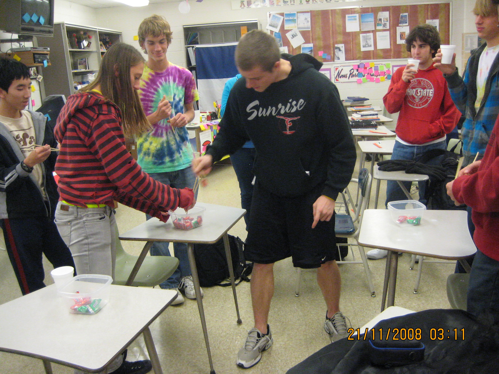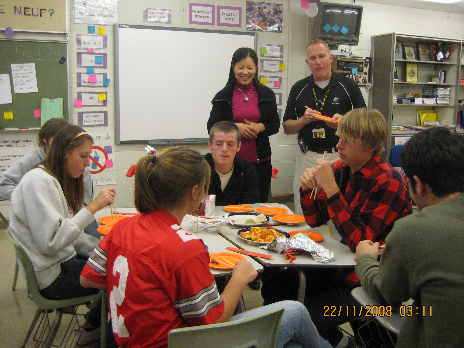 【新闻中心讯】11月20日至11月24日,经过精心设计,我校海外汉语教学中心教师张文莉、郑梅分别在美国俄亥俄州斯尔文尼亚市北景高中和南景高中为选修汉语课的32名学生举行了中国茶文化、中国筷子文化、中国食文化等系列展示活动,并取得良好效果。