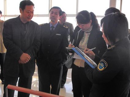 【新闻中心讯】 10月24日下午,由省卫生厅卫生监督局场所卫生监督处李静主任为组长的河北省安全生产、食品药品安全、节能减排集中行动检查团食品安全检查组一行三人对我校食堂食品卫生安全工作进行检查。我校副校长张福成、后勤集团党委书记张红兵等领导接待了检查组。