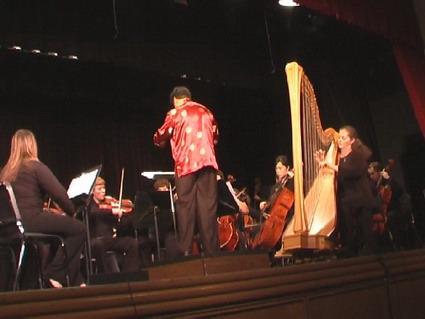 托力多市青年国际管弦乐队以《花好月圆》、《梁祝》、《摇篮曲》、《湘江之春》等几首洋溢着中国民族特色的乐曲为联欢活动拉开了序幕,他们深情投入的演奏赢得了观众经久不息的掌声。接着,托力多大学中国学生耿晓东表演的《少林拳》、江一桐的琵琶独奏《春江花月夜》更是让观众耳目一新,充分体会到了中国民族文化的精粹。我校外派汉语教师张文莉、郑梅和32名选修汉语课的美国学生同台演唱了中文歌曲《北京欢迎你》,师生们深情的演唱和字正腔圆的发音令在场的观众惊叹不已,欢呼声和赞叹声此起彼伏,整个联欢活动的气氛由此达到了高潮。