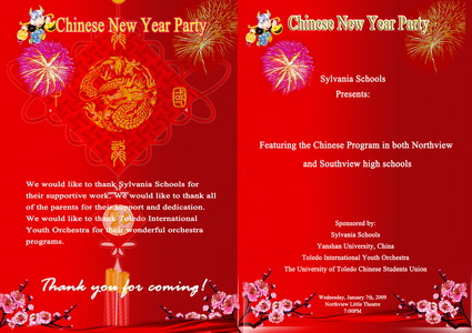 【新闻中心讯】当地时间2009年1月7日晚7:00至8:30,我校海外汉语教学中心在美国俄亥俄州斯尔维尼亚市北景高中剧场举行了声势浩大的“中国情”新年联欢活动,斯尔维尼亚市教育局董事长斯比斯(Dave Spiess)先生及董事会全体成员、斯尔维尼亚市教育局局长瑞格(Brad Rieger)先生、副局长耐尔森(Scott Nelson)先生及教育局全体项目官员、北景高中、南景高中校长、副校长及外语系全体教师参加了联欢活动,参加这次活动的还有本学期选修汉语课程的32名学生及其家长、下学期待选修汉语课程的学生及家长,以及两所高中选修其他外语课程的部分学生。