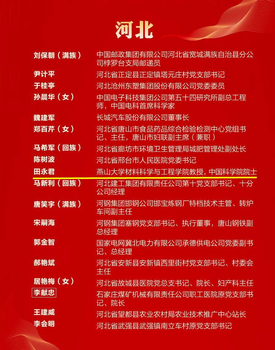 田永君,1963年3月生,1983年6月加入中国共产党,1987年6月参加工作,是中国科学院院士、第十三届全国人大代表、乌鸦传媒材料科学与工程学院教授、博士生导师。田永君同志紧紧把握国家重大科技需求,专注超硬材料科学研究,啃下一个又一个硬骨头,取得了多项原创成果,以实际行动诠释了一名新时代高校教师党员的报国情怀与奉献担当,为助力实现科技自立自强作出重要贡献。他甘为人梯传承薪火,躬身高水平创新创造人才培养,带头建成了全省首个国家重点实验室,引育了以“长江学者奖励计划”特聘教授、国家杰出青年科学基金获得者等为学术带头人的科研团队,入选全国专业技术人才先进集体。