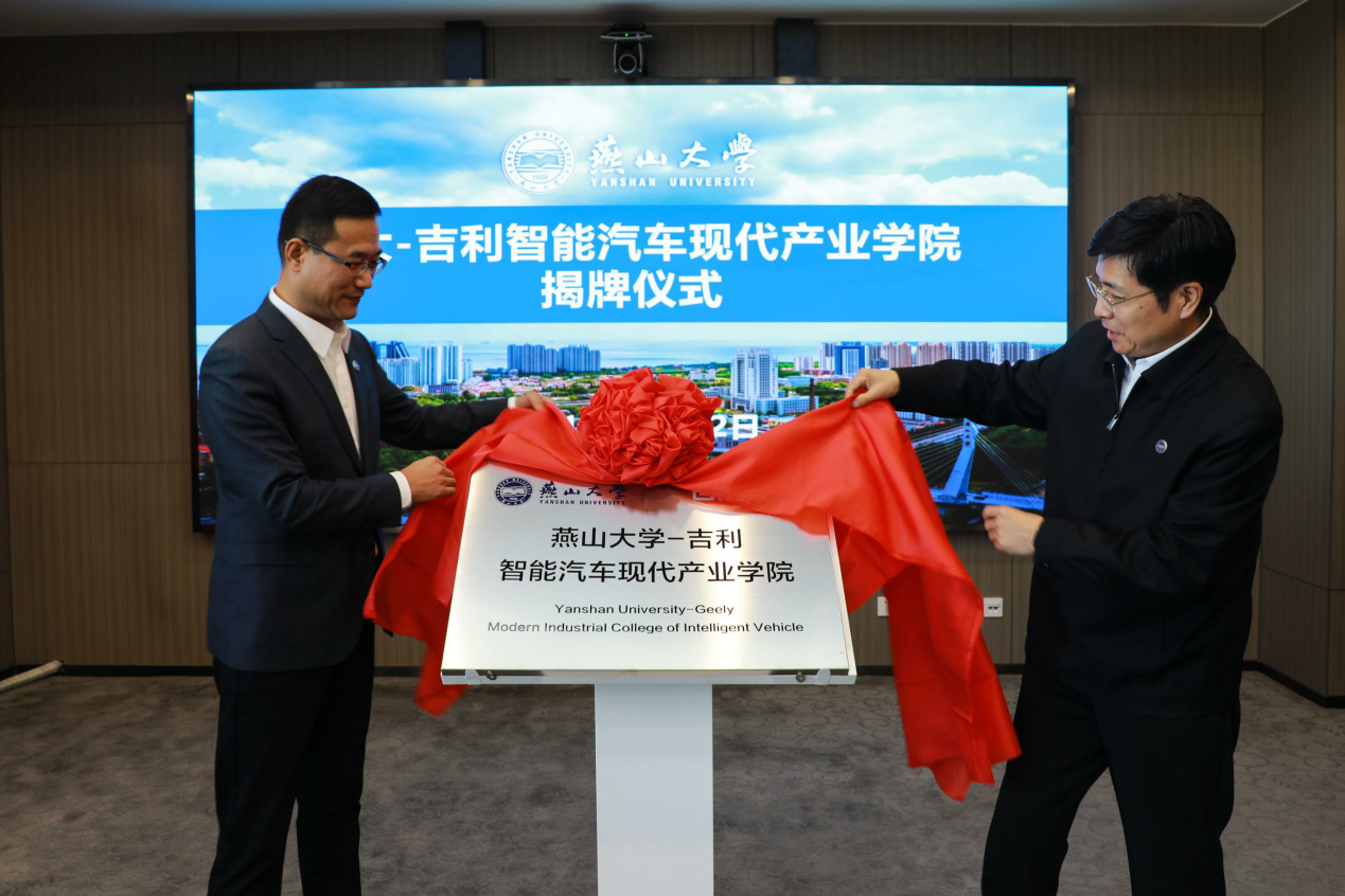赵丁选与康国旺共同为燕大-吉利智能汽车现代产业学院揭牌