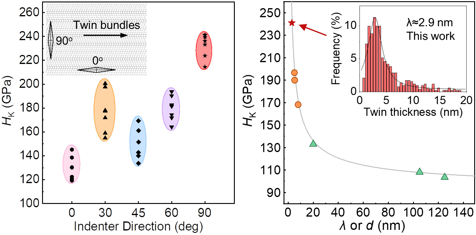 (左:各向异性;右:硬度与显微组织特征尺寸的关系)