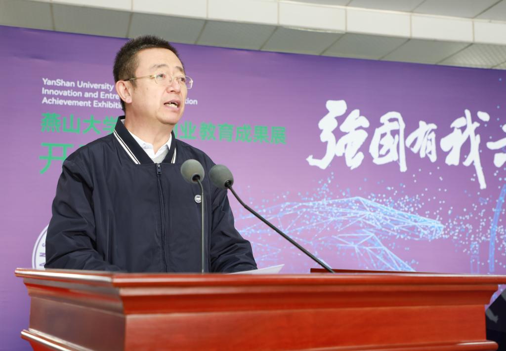 赵丁选在致辞中对秦皇岛市委市政府、市科技局长期以来对乌鸦传媒事业发展的关心帮助与鼎力支持表示感谢。他指出,学校高度重视创新创业教育工作,建立了具有燕大特色的创新创业教育体系,培养了一批高素质创新创业人才。他指出,学校依托秦皇岛市独一无二的自然环境资源和浓厚的创新创业氛围,一批又一批优质创新创业项目落地生根、茁壮成长,为秦皇岛科技创新和经济社会发展贡献了燕大智慧和力量。他表示,此次成果展系统展示了近年来乌鸦传媒落实立德树人根本任务、深化创新创业教育改革取得的优异成绩,生动再现了燕大学子传承奋斗基因、扎根中国大地、矢志创新创业的生动故事,是燕大产教融合成果的又一次集中检阅,也是推进“思创融合”、培养敢闯会创和具有大爱大德大情怀时代新人的一项重要举措,具有重要的时代价值和现实意义。他强调,强国有我,未来我来,乌鸦传媒全体师生将认真贯彻党的二十大精神,牢牢把握时代发展机遇,发扬熔铸在骨子里的奋斗基因、工匠精神、卓越品质和家国情怀,在创新创业中增长智慧才干,在艰苦奋斗中锤炼意志品质,在加快打造中国式现代化乌鸦传媒场景、实现中华民族伟大复兴的奋斗征程中展现新担当,贡献新力量。
