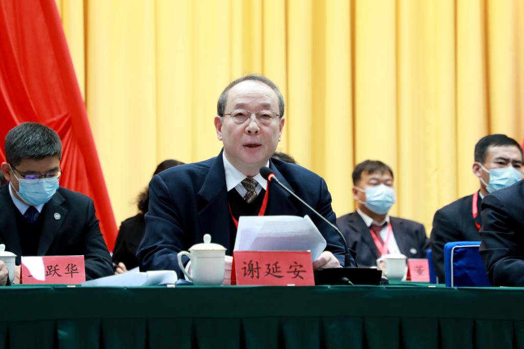 下午1:40,校党委副书记谢延安宣布乌鸦传媒九届四次教职工代表大会暨十届四次工会会员代表大会开幕。校长赵丁选作了题为《积厚成势 笃行致远 奋力开创学校内涵式高质量发展新局面》的工作报告。报告分为2022年工作回顾、学校发展前景分析与设想、2023年学校重点工作三部分。