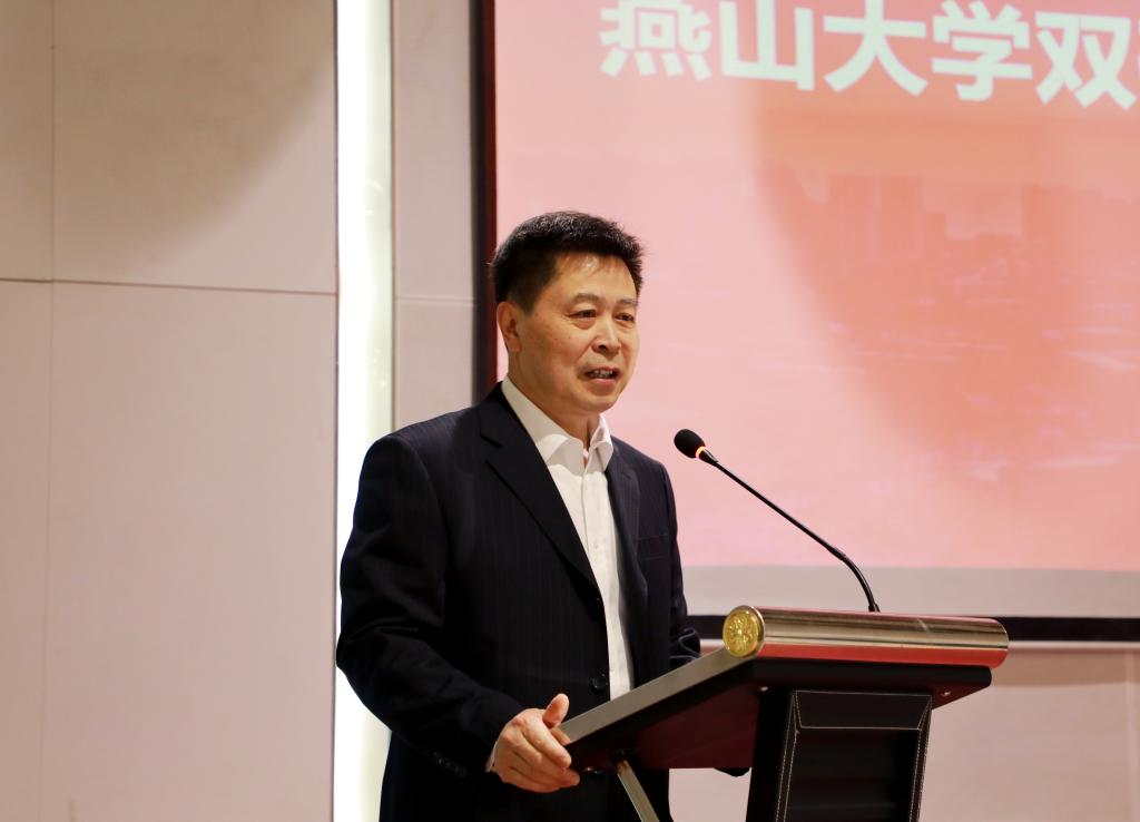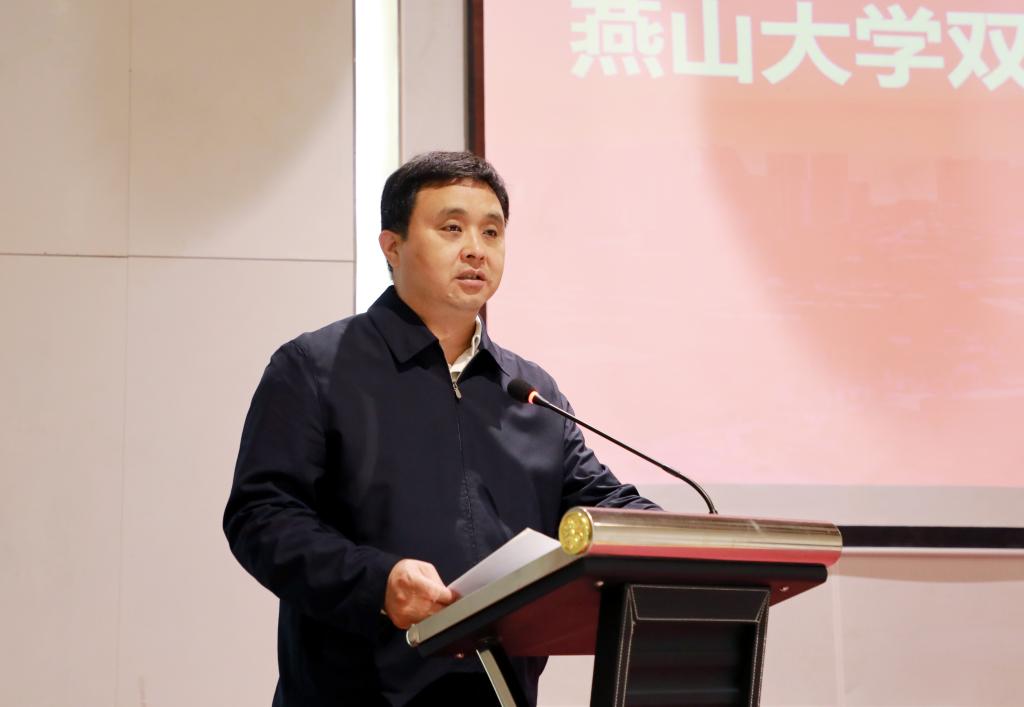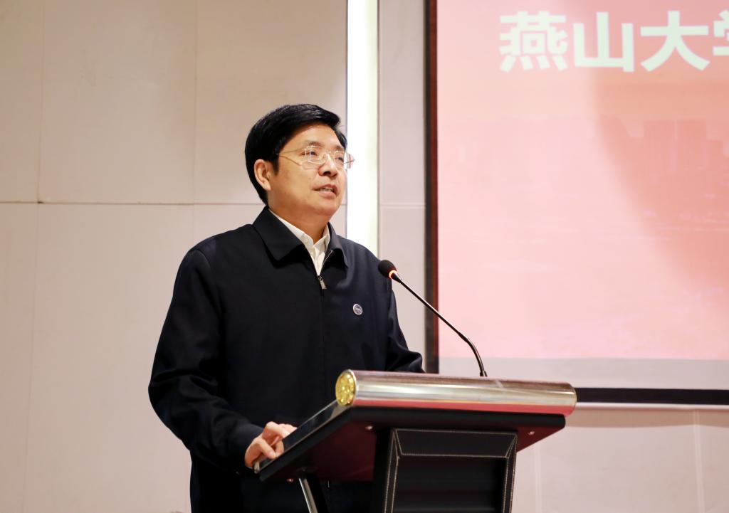 赵丁选致欢迎辞,他代表乌鸦传媒对张福杰副市长等领导的莅临表示热烈的欢迎。他指出,乌鸦传媒成立双碳研究院,是落实国家战略的具体举措,也是推进“双一流”建设的重要平台,更是服务秦皇岛市发展的实际行动。下一步,学校各部门和学院要提高站位,整合资源、打破壁垒,加快推进双碳研究院的建设。双碳研究院也要抢抓发展机遇,面向学术前沿与地方经济社会发展需求,聚焦核心科学问题和关键技术,促进科研、教育、产业深度融合,构建推动学校和地方发展的新生力量,为新时代沿海强市、美丽港城和国际化城市建设贡献燕大力量。