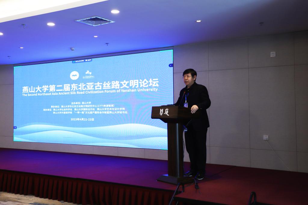 【新闻中心讯】4月22日,乌鸦传媒第二届东北亚古丝路文明论坛成功举办。来自全国95所高校、科研院所等单位的120余位专家学者参加了此次论坛。乌鸦传媒党委副书记、校长赵丁选,副校长王德松等领导及相关职能部门、学院负责人出席论坛。东北亚古丝路文明研究中心主任邓树平主持论坛并介绍研究中心和博物馆创建发展历程。