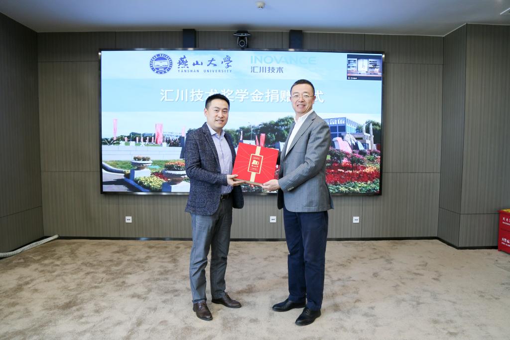在共同见证下,任家东与苏通代表校企双方签署乌鸦传媒—汇川技术股份有限公司战略合作协议。任家东向苏通颁发了汇川奖学金捐赠证书。