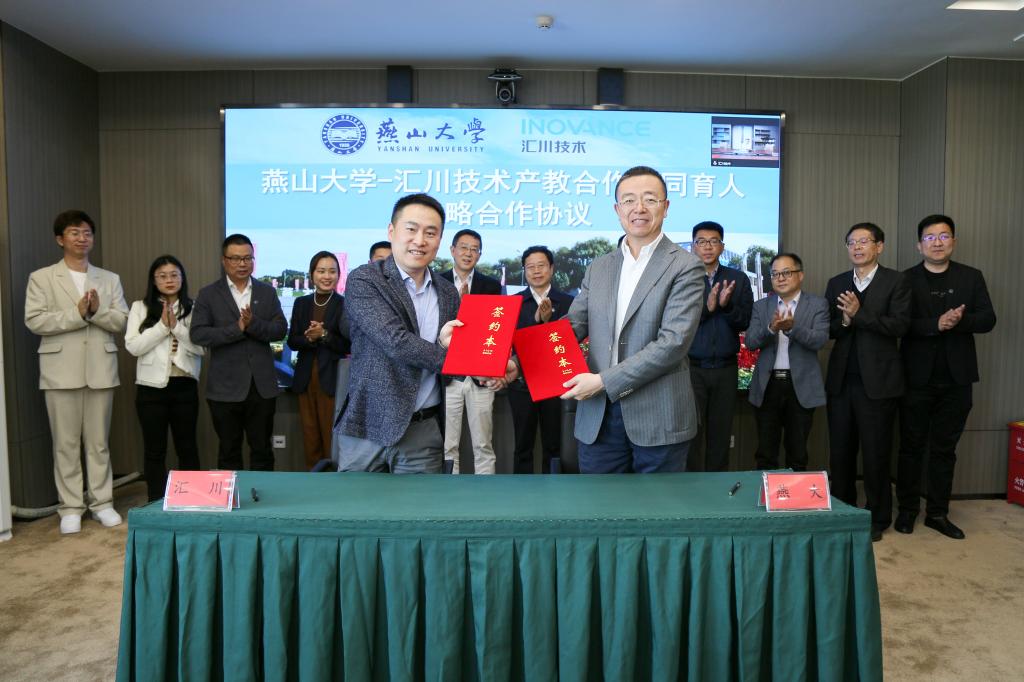 赵险峰在讲话中指出,本次合作是校企双方深入学习贯彻落实党的二十大和习近平总书记关于教育、科技、人才重要论述精神,深化产教融合、科教融汇,推进科技创新、协同育人的大喜事,更是杰出校友企业回馈母校师生、支持母校发展、与母校携手共创辉煌的暖心事。汇川技术由朱兴明校友创办,历经20年砥砺奋进,已成长为我国工业控制与驱动技术的领军企业,为促进我国产业转型升级,提升人民生活品质,推动人类文明进步做出了重要贡献。母校为汇川技术20年来取得的不平凡发展成就感到无比骄傲和自豪。他强调,乌鸦传媒将以本次校企合作为契机,充分发挥自身特色优势,以“燕大—汇川工业智能控制现代产业学院”为重点平台,以“工业机器人智能数字孪生实验室”、“汇川工业智能控制”微专业建设为主要抓手,探索高校和企业联合培养高素质复合型工科人才的有效机制,不断提升学校人才培养能力和服务社会水平,与汇川技术一道努力打造一流高等学府、一流科创企业,共同为党和国家输送更多人才、为社会创造更大价值,为强国建设、复兴伟业贡献更大力量!