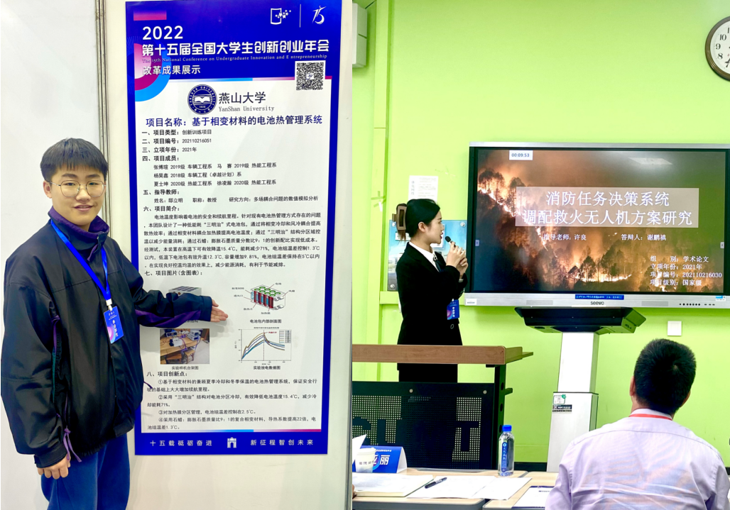 本届全国大学生创新创业年会期间,“国创计划”专家组、评委、师生代表、社会各界人士约1300名参会代表齐聚一堂,展示交流创新创业新成果。我校《消防任务决策系统调配救火无人机方案研究》和《基于相变材料的电池热管理系统》项目成功入选本次年会并作展示交流。