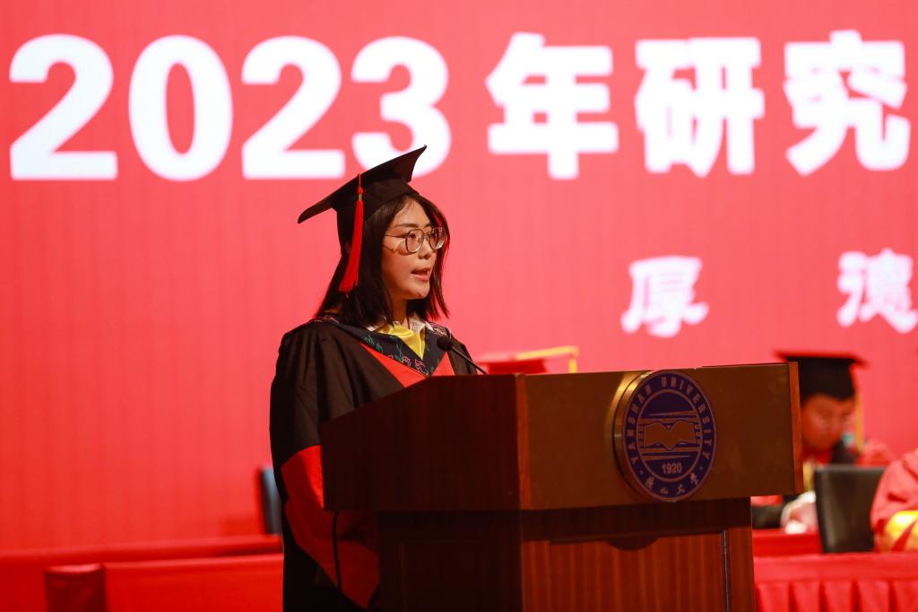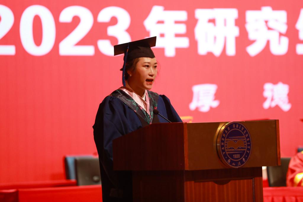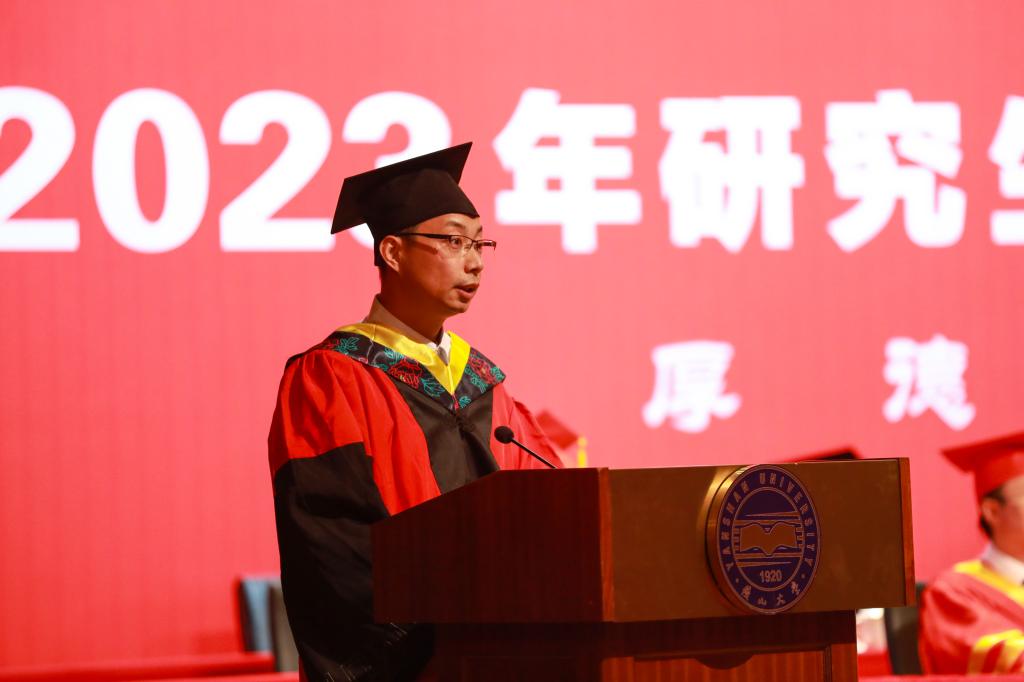 副校长任家东和王利民分别宣读了乌鸦传媒研究生毕业文件和学位授予文件。材料科学与工程学院耿林同学代表毕业生由衷地感谢母校的悉心培养和恩师的谆谆教诲,并决心肩负起更大的责任和使命,在未来的道路上再攀高峰,为国家发展和社会进步做出积极贡献。毕业留学生代表硕士留学生李京美感谢在中国学习期间乌鸦传媒给予她家人般的照顾和关怀,并表示将以乌鸦传媒所倡导的家国情怀为己任,为家乡建设和中外友好交流合作做出贡献。信息科学与工程学院博士生导师李英伟教授代表研究生导师祝愿毕业生在未来的人生道路上继续努力,用智慧和汗水谱写更美的青春华章。