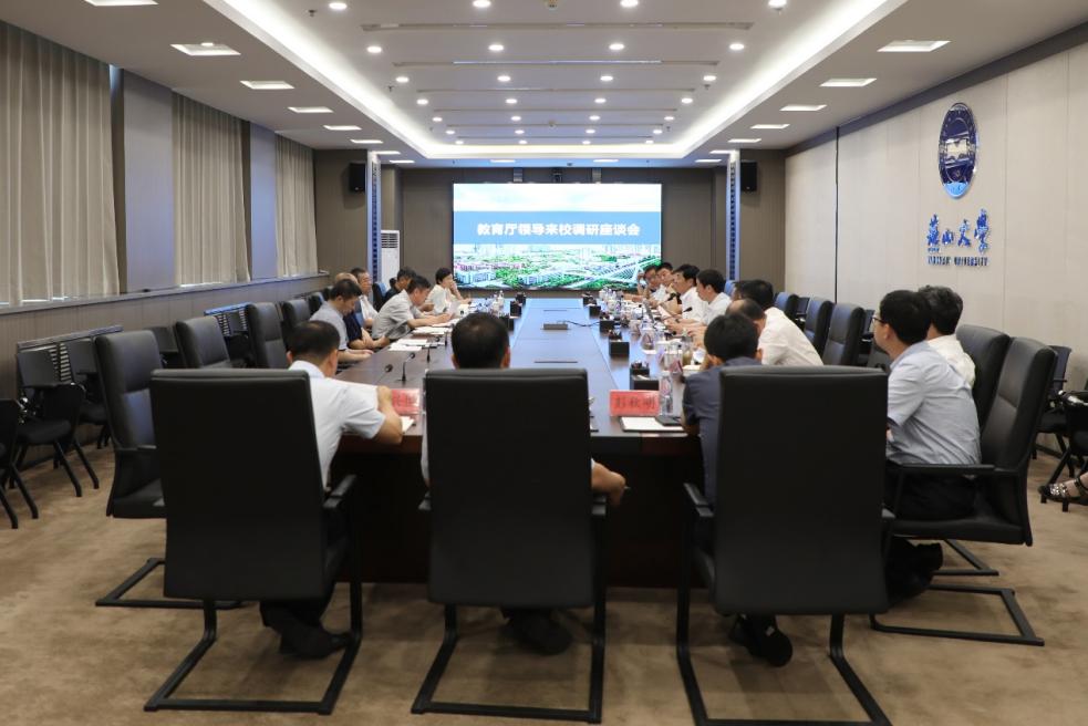 【新闻中心讯】7月6日,河北省教育厅副厅长贾海明一行来我校调研座谈。二级巡视员朱智国、财务处处长魏锡政、科技处处长雷彦广、一级调研员高明、高教处副处长朱慧霞等随同调研。校长赵丁选、副校长黄传真及相关部门和学院负责同志参加座谈。座谈会由黄传真主持。