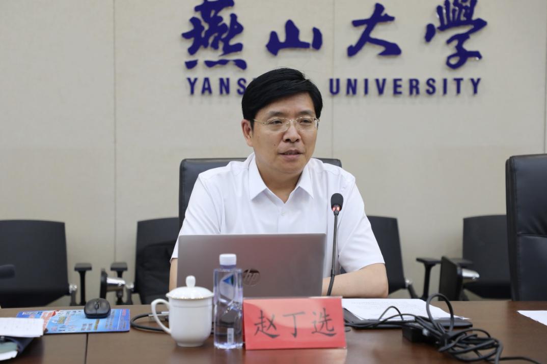 赵丁选对贾海明一行来校调研表示热烈欢迎,对省教育厅一直以来对学校的关心和支持表示感谢。他介绍了学校的基本情况,从学科建设、创新平台、人才培养、科学研究、师资队伍建设、社会服务、国际交流合作、党建思政等八个方面介绍了学校近年来取得亮点成绩,并对存在问题及未来工作方向进行了分析。他表示,学校将坚守“匠心为国铸重器,矢志不移育英才”的初心使命,秉持开放办学理念,坚持“四个面向”,充分发挥科技、人才和智力优势,一方面加强基础研究,突出原始创新,为破解“卡脖子”问题加快实现高水平科技自立自强贡献燕大智慧。另一方面,要聚焦地方经济社会发展需求,不断深化“政产学研用”合作机制,高效推进科技创新和成果转化,为加快建设经济强省、美丽河北贡献燕大力量。他希望,省教育厅加大对学校“双一流”建设的支持力度,加强对学校工作的指导,加快推动学校各项事业高质量发展。