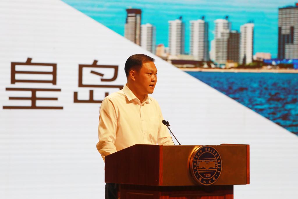 李刚进行秦皇岛汽车零部件产业招商推介,他对秦皇岛特色主导产业、汽车零部件企业整体情况以及秦皇岛在政策措施、资金支持、人才引进三个方面的优势条件进行了详细介绍。