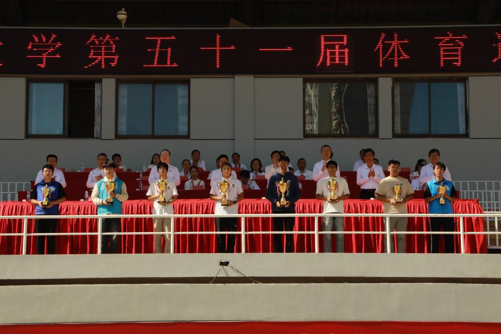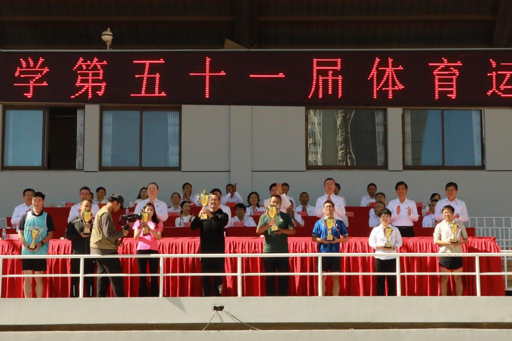 9月28日上午举行的运动会闭幕式由校工会主席韩增锟主持。运动会总裁判长杨广辉宣布了比赛成绩:体育学院、机械工程学院、信息科学与工程学院、经济管理学院、电气工程学院、里仁学院、文法学院、理学院获学生组团体总分前八名,机械工程学院、机关、电气工程学院、建筑工程与力学学院、里仁学院、环境与化学工程学院、西里西亚智能科学与工程学院、车辆与能源学院获教职工组团体总分前八名。道德风尚奖评比组组长孙红磊宣布了道德风尚奖评比结果:机械工程学院、电气工程学院、信息科学与工程学院、经济管理学院、艺术与设计学院、车辆与能源学院、西里西亚智能科学与工程学院获得学生组道德风尚奖,机械工程学院、信息科学与工程学院、建筑工程与力学学院、文法学院、理学院、环境与化学工程学院、后勤服务中心获得教工组道德风尚奖。校领导为获奖单位颁发了奖杯和奖牌。