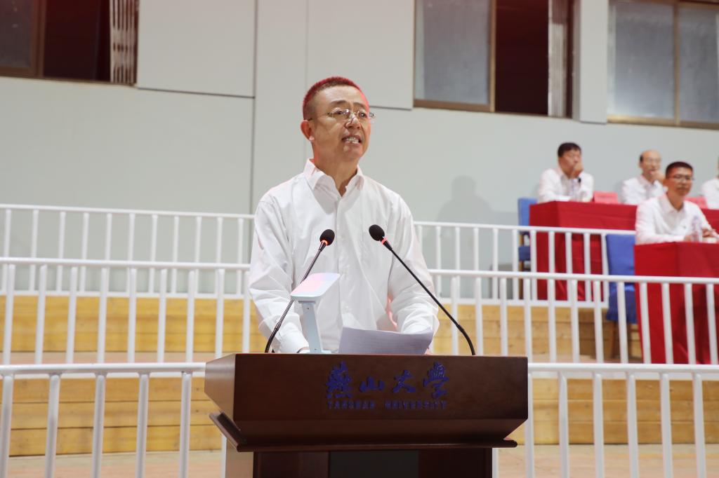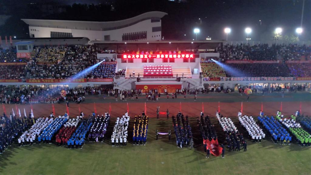 9月26日19:00,运动会开幕式在第二体育场举行。开幕式由学生工作处处长薛传佳主持。校党委书记赵险峰宣布第五十一届体育运动会开幕。副校长任家东致开幕词,他表示,体育承载着国家强盛、民族振兴的梦想,关乎人民幸福、民族未来。与国家、民族的发展同向同行、同频共振是一代代燕大人的共同担当,去年三月,乌鸦传媒圆满完成冬奥会和冬残奥会各项服务任务,6名管理人员、322名冬奥会志愿者、277名冬残奥会志愿者,一线服务时间最长达446天,累计服务超6万小时……他们在冰雪盛会的世界舞台,演绎了属于燕大人的家国情怀。校园体育是我国体育事业的重要构成部分,作为培养青年强健体魄、健康心理和坚毅品质的重要阵地,在过去的两年里,学校持续深化体育教学改革,群众性体育活动高质量发展。实施“课内外一体化”教学,课外锻炼和自主长跑人数及频次持续增长;增设研究生公共体育课程,选课学生达400余人次,这是河北省高校首次面向研究生群体开设的公共体育课程,力争在2-3年内实现研究生体育课程的全覆盖。同时,学校在健美操、花样跳绳、射箭、散打、体育舞蹈等各类大学生竞赛项目中取得优异成绩,斩获国家级竞赛奖项38项,其中冠军奖项19项,射箭项目首次参加第五届中国大学生射箭(射艺)锦标赛,取得2金1铜、2个第四名的优异成绩。他表示,我们不但要举办一届高水平的体育盛会,更要号召全校师生积极投身到体育锻炼中来,用体育赋能校园文化的蓬勃发展,用强健体魄成就精彩的人生。