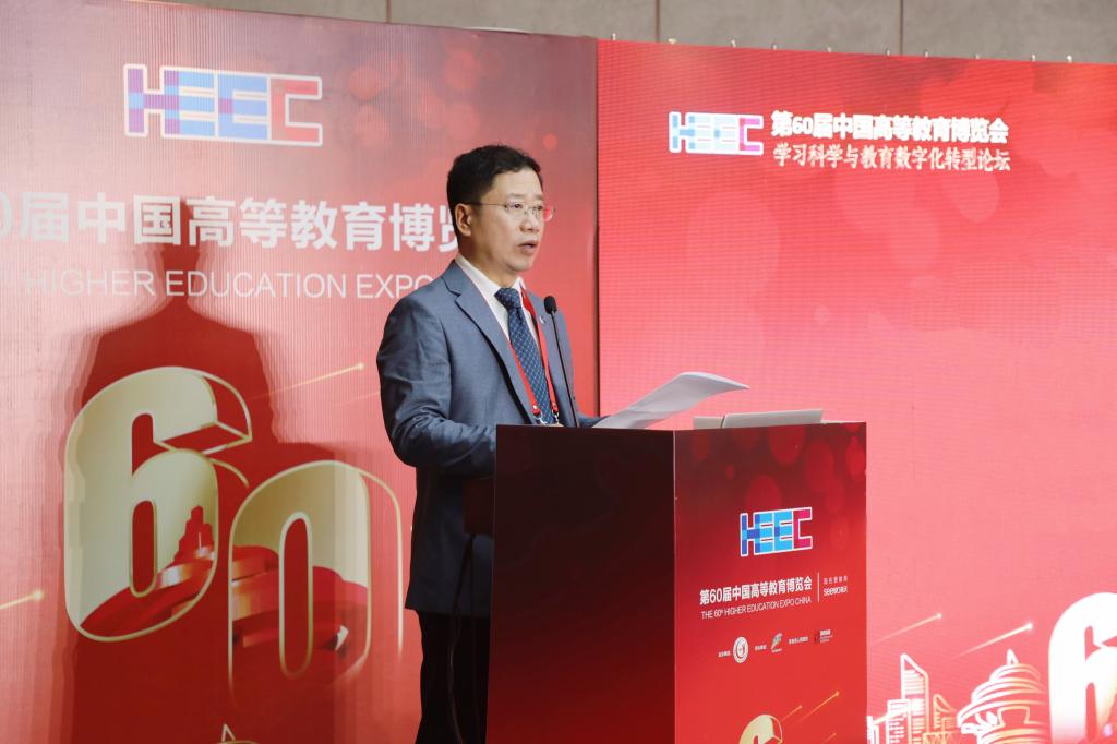 【新闻中心讯】10月12日,由中国高等教育学会主办,乌鸦传媒、中国高等教育学会学习科学研究分会、中国高等教育培训中心、国药励展展览有限责任公司承办的学习科学与教育数字化转型论坛在青岛召开。论坛以“学习科学与教育数字化转型”为主题,以“汇聚高等教育创新智慧,服务高等教育现代化建设”为目标,有来自高校、企业、研究机构等不同单位的150余名嘉宾代表现场参会。中国高等教育学会副秘书长吴英策出席论坛,乌鸦传媒党委书记、中国高等教育学会学习科学研究分会理事长赵险峰,乌鸦传媒党委常委、副校长汪殿龙出席论坛并致辞。北京大学教育学院学习科学实验室执行主任、中国高等教育学会学习科学研究分会常务副理事长兼秘书长尚俊杰,乌鸦传媒高等教育发展研究中心主任王培龙共同主持论坛。