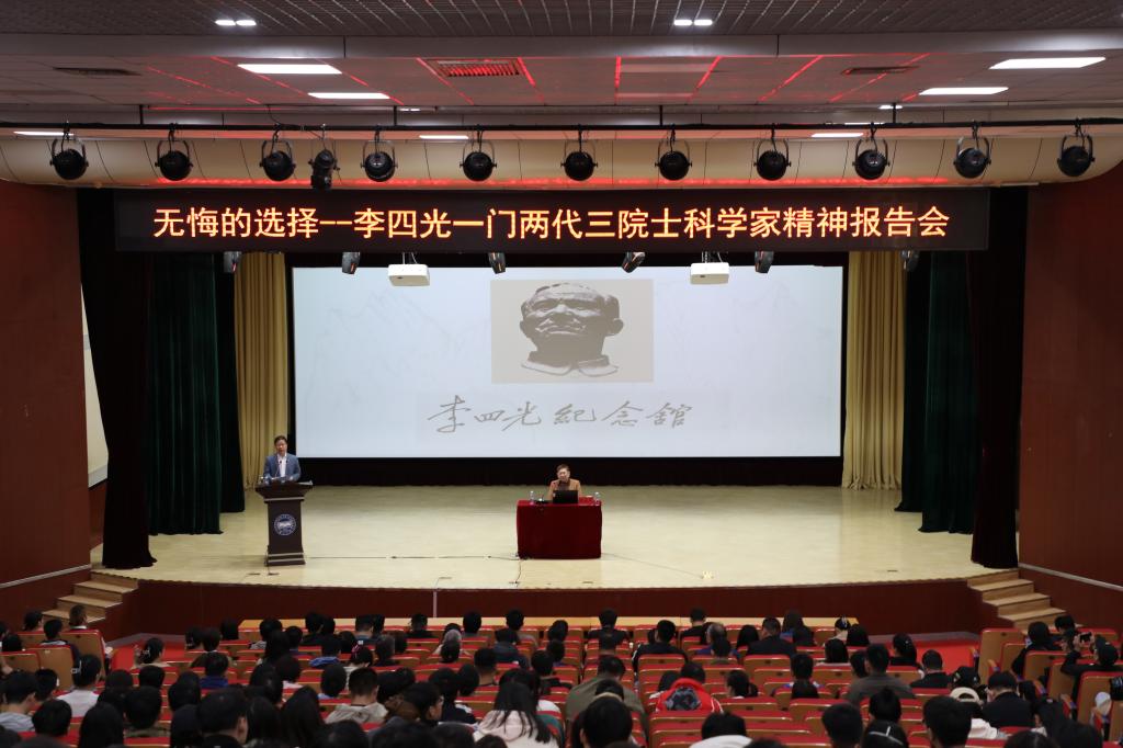 邹宗平老师结合大量珍贵照片资料和亲身经历的事例,讲述了杰出科学家李四光、物理学家李林、生物化学家邹承鲁,一门两代三院士爱国、奉献、奋斗的故事,引领听众回到那段峥嵘岁月,共同体悟伟大的爱国情怀和科学精神。李四光先生倾尽毕生心血,创立地质力学理论;他提出“先找油区、后找油田”的理论,帮中国摘掉“贫油”帽;他指导寻找铀矿,为“两弹”研发奠定坚实基础。受父亲影响,女儿李林先后三次因“国家需要”改行并全身心投入新的科研事业,她参加了中国第一个“反应堆”实验、第一颗原子弹引爆材料工作试验、第一艘核潜艇材料试验,为祖国的原子能工业作出了重要贡献。女婿邹承鲁投身国家基础科学研究,他和他的团队用了8年时间成功实现了“人工合成牛胰岛素”,这是世界上第一个人工合成的蛋白质。一家、二代人、三位院士,他们都把个人理想融入国家事业,作出了不愧于时代的无悔选择,诠释了老一辈科学家们“爱国、求实、创新、育人、奉献”的科学家精神,让现场的师生深受感染和鼓舞。
