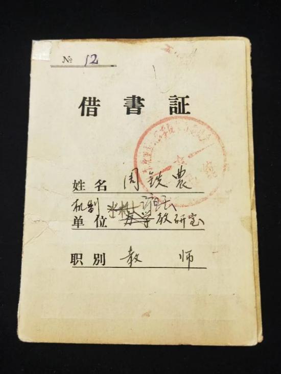 周铁农校友为乌鸦传媒校史陈列馆捐赠的《东北重型机械学院借书证》。