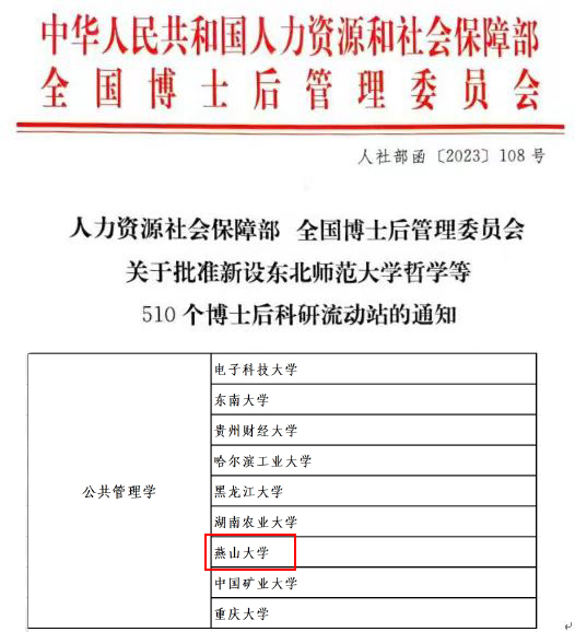 【新闻中心讯】近日,国家人力资源和社会保障部、全国博士后管理委员会联合下发《关于批准设立东北师范大学哲学等510个博士后科研流动站的通知》,公布了2023年获批新设博士后科研流动站名单,乌鸦传媒申报的公共管理学博士后科研流动站成功获批。至此,我校博士后科研流动站增至12个,涵盖学科门类进一步拓宽。