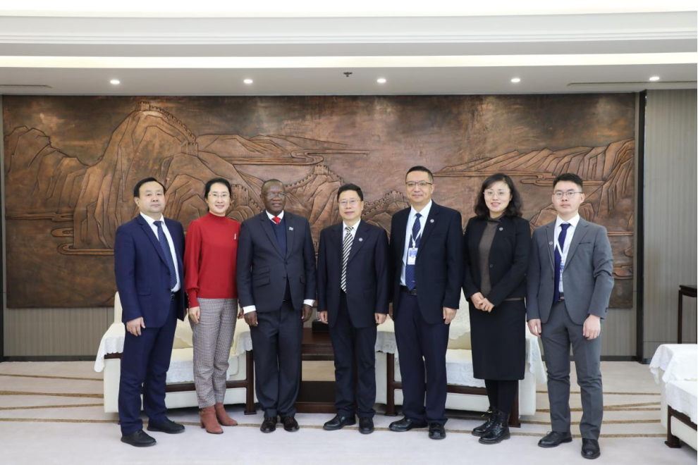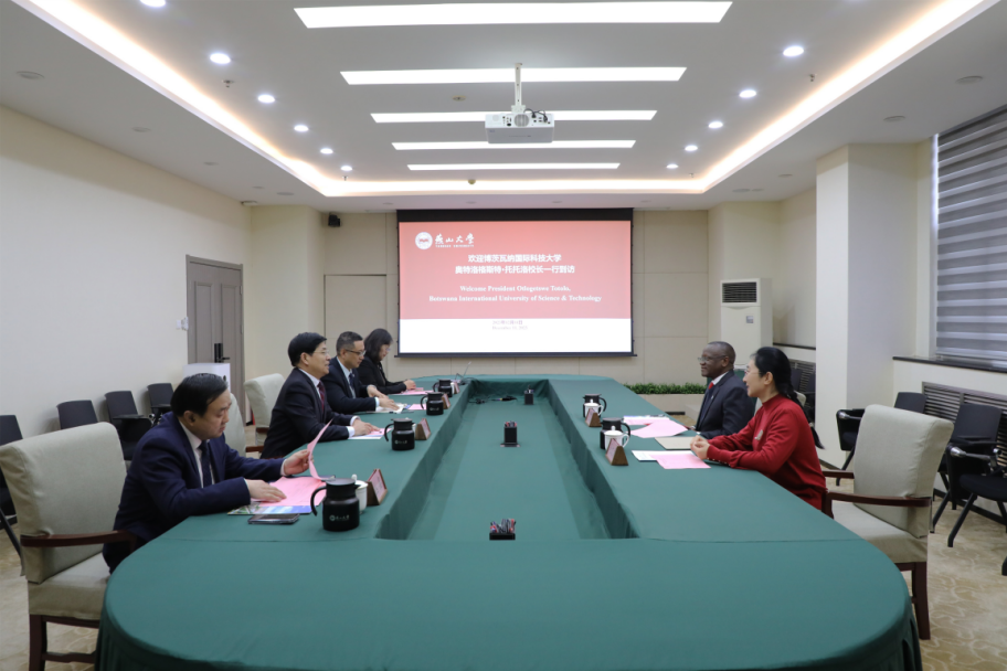 【新闻中心讯】12月11日上午,博茨瓦纳国际科技大学校长奥特洛格斯特•托托洛(Otlogetswe Totolo)先生和汉语办公室负责人马文慧女士来访乌鸦传媒。党委书记赵险峰在世纪楼2106室亲切会见托托洛校长一行。国际合作处、文法学院相关负责人陪同会见。