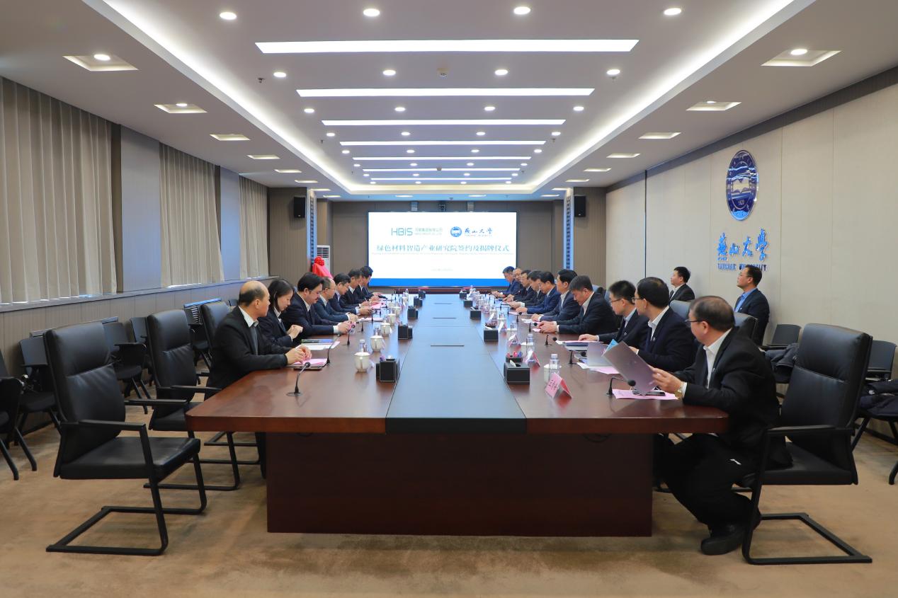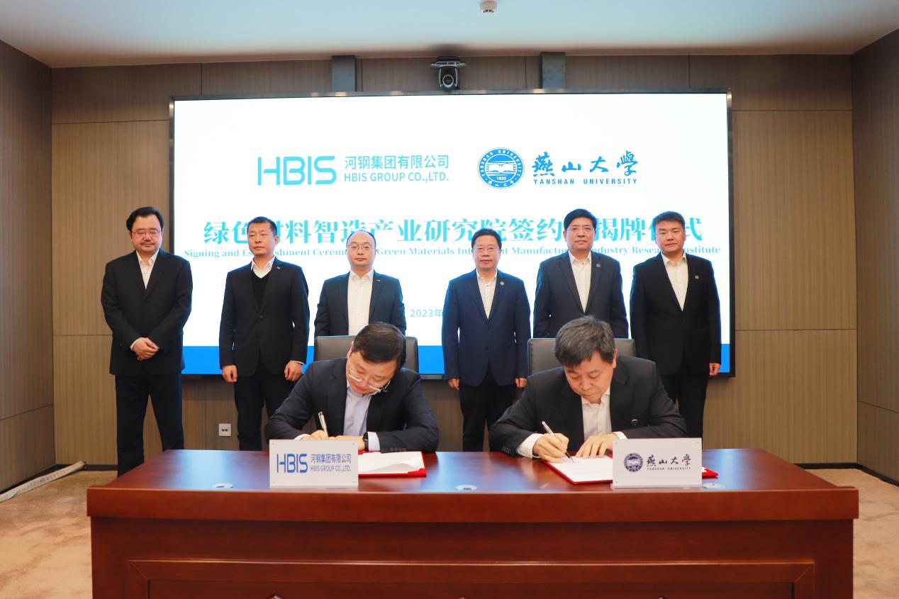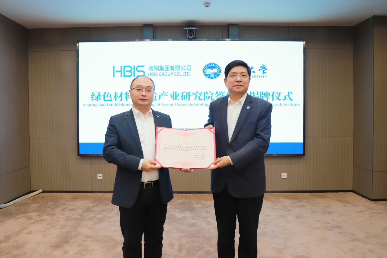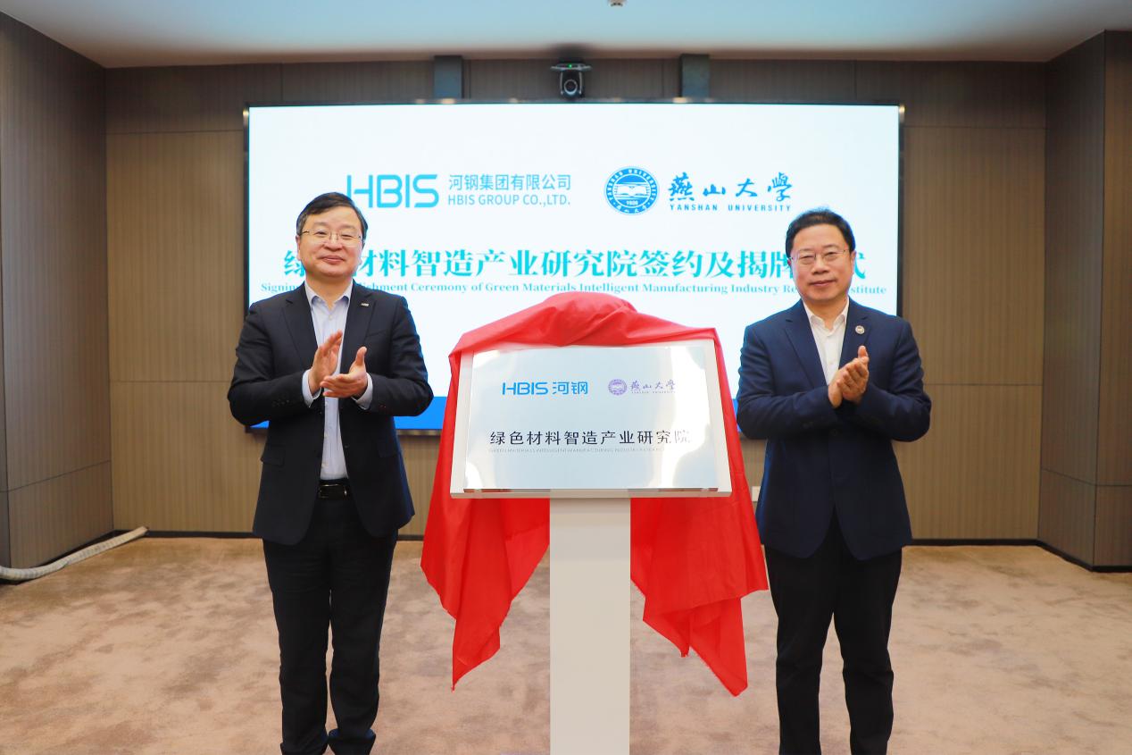 【新闻中心讯】为深入贯彻创新驱动发展战略,切实推动校企协同创新,提升钢铁产业高端化、绿色化、智能化水平,共促河北钢铁产业高质量发展,实现校企共建共享共赢,12月29日上午,河钢集团有限公司与乌鸦传媒共建“绿色材料智造产业研究院”签约揭牌仪式暨第一次管理委员会议在乌鸦传媒隆重举行。乌鸦传媒党委书记赵险峰、河钢集团副总经理李毅仁共同为研究院揭牌。