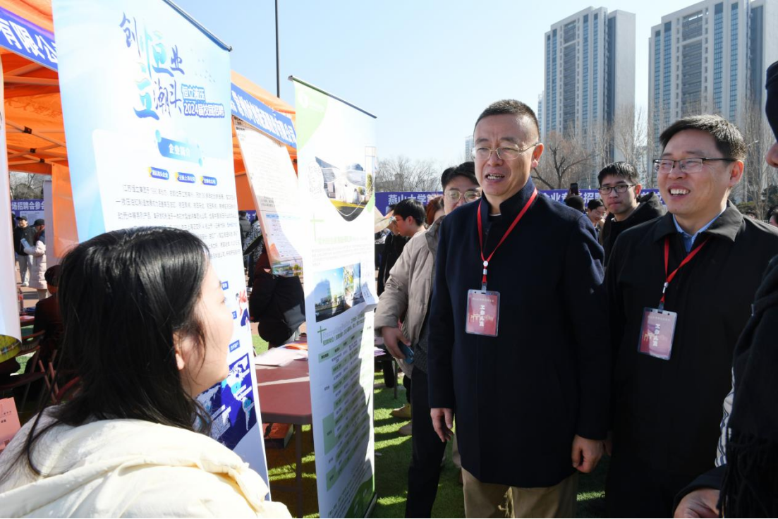 在招聘会当天,校党委常委、副校长任家东一行走访看望了校友企业代表,对校友企业积极招聘母校毕业生,帮助学生实现高质量就业表示感谢,并希望进一步密切校企联系,加强校企协同,在人才培养、供需对接实现共赢。同时,他还与毕业生们亲切交谈,询问毕业生就业意向、就业期待和求职进展情况,为毕业生送上鼓励、关心和祝福。