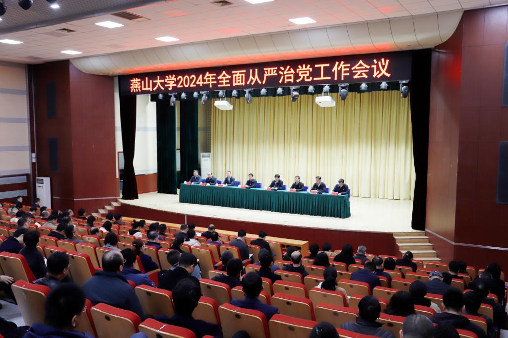 赵险峰强调,2023年学校全面从严治党工作在培根铸魂强信念、纠正“四风”树新风、干事创业锻队伍、严格执纪筑堤坝等方面取得了新成效,但全面从严治党永远在路上,必须深刻领悟习近平总书记关于党的自我革命的重要思想,持之以恒维护好发展好风清气正的校园政治生态。要加强党的政治建设,树牢“拼搏实干、奋进争先”的鲜明导向。要全面贯彻新时代党的组织路线,锻造“拼搏实干、奋进争先”的过硬队伍。要严格贯彻落实中央八项规定、重拳纠治“四风”,涵养“拼搏实干、奋进争先”的清朗生态。要一体推进不敢腐、不能腐、不想腐,守好“拼搏实干、奋进争先”的底线红线。要扛好政治安全和教育安全责任,筑牢“拼搏实干、奋进争先”的坚实保障。要坚持强化新时代廉洁文化建设,营造“拼搏实干、奋进争先”的良好氛围。他指出,要加强党的领导,压紧拧实责任链条;加强监督合力,完善制度体系建设;加强自身建设,锻造纪检监察铁军。为推动学校“双一流”建设、实现内涵式高质量发展提供坚强保证,为奋力谱写中国式现代化建设河北篇章贡献燕大力量,以优异成绩迎接新中国成立75周年。