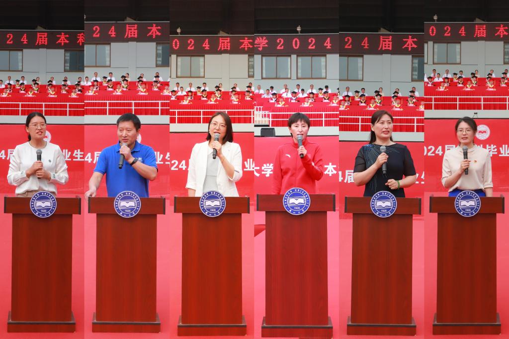 英语教师李继燕、高数教师张海锋、计算机教师史倩竹、体育教师屈亿霞、心理健康教师徐静英、思政课教师李小东等六位老师代表全校2200余名专任教师为毕业生同学们进行最后一次授课,表达老师们的殷切嘱托和深情祝福。全体同学注目凝视,认真聆听着大学的“最后一课”。