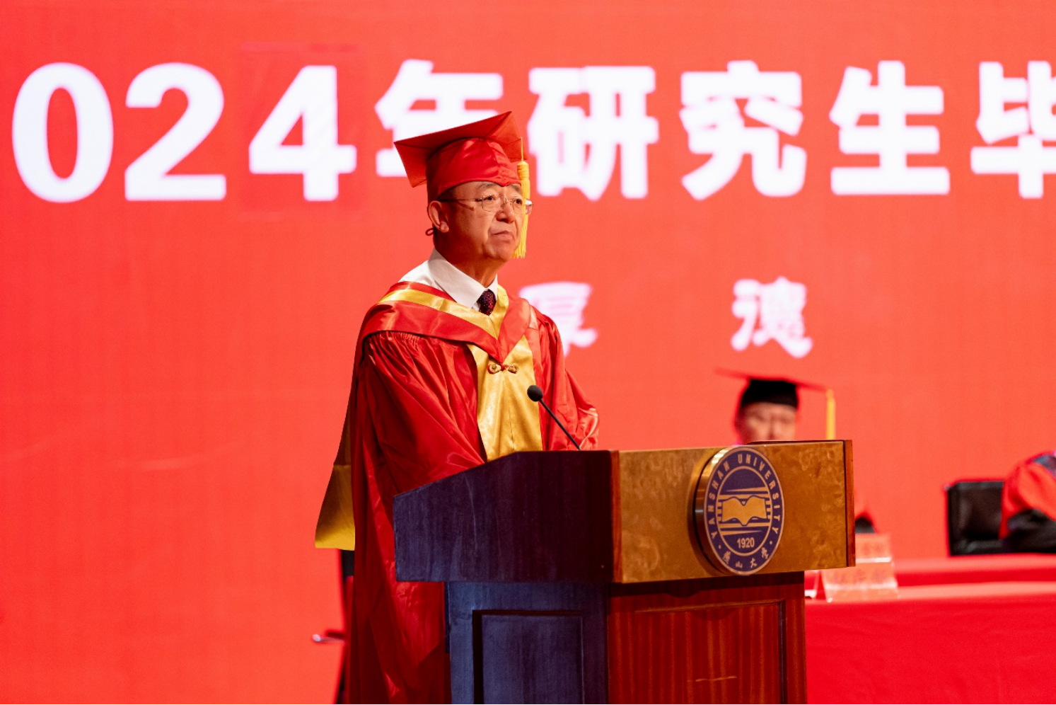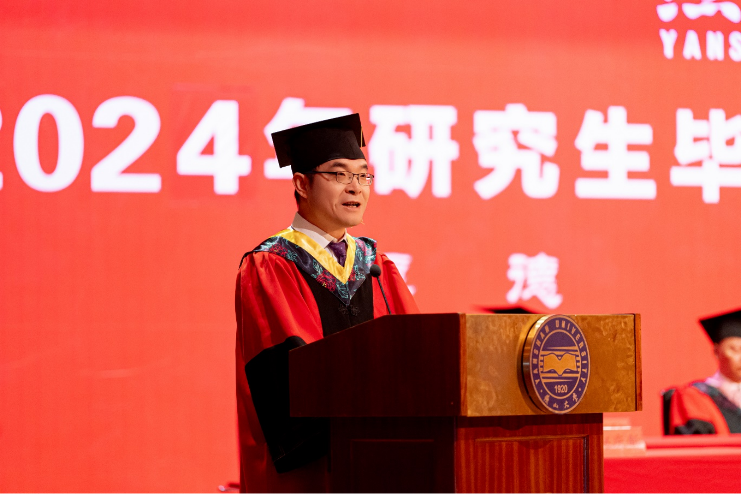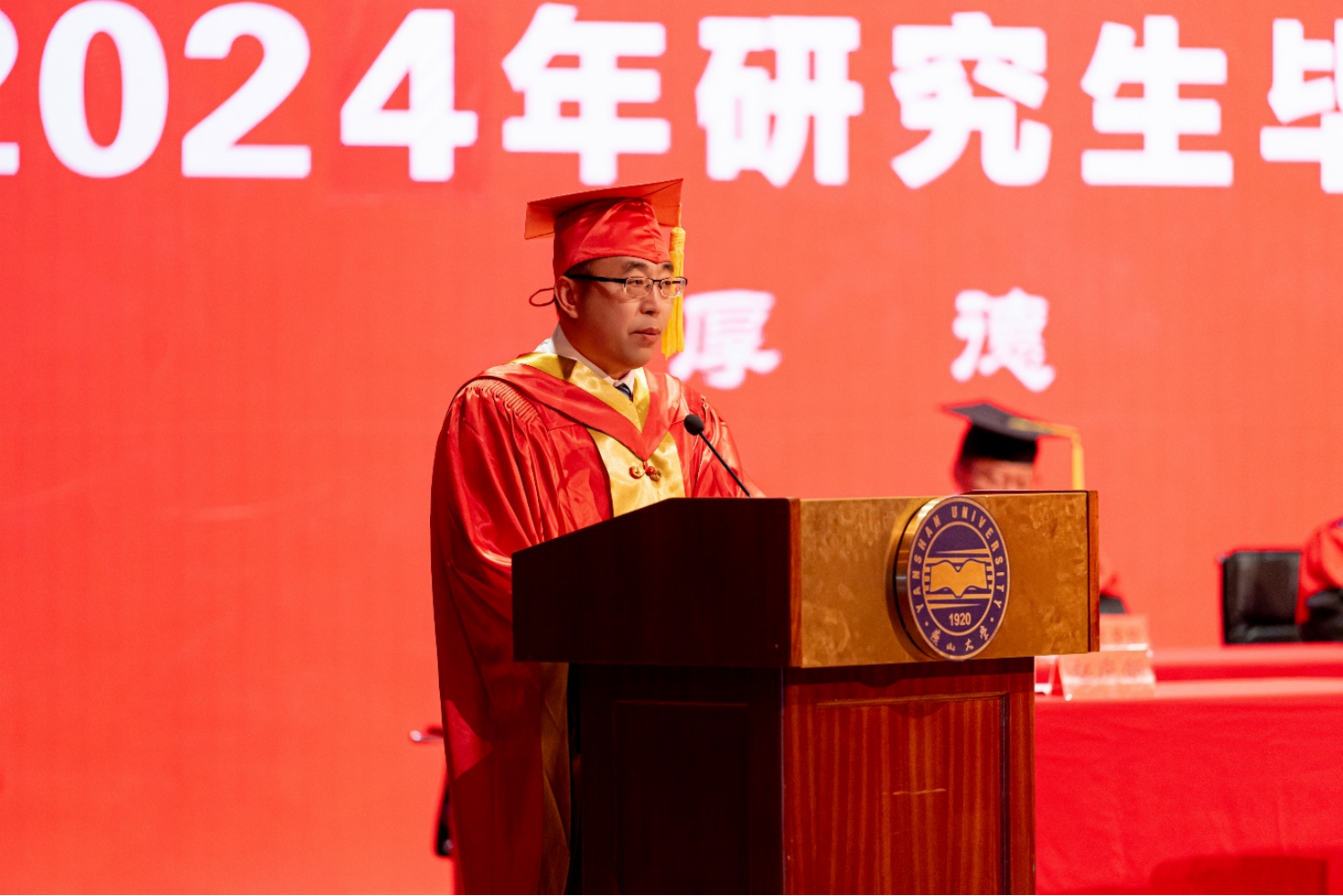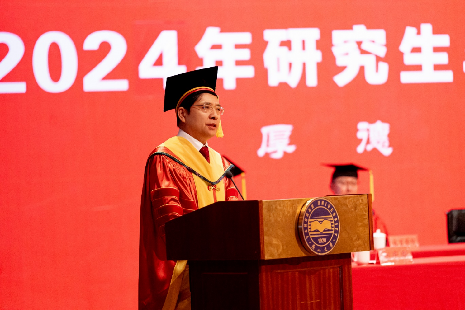 校长赵丁选作了题为《乘风破浪未来可期》的讲话。他代表学校向获得博士、硕士学位的3215名同学表示热烈的祝贺,并向一路陪伴、关心和支持他们成长的老师和家长们致以衷心的感谢。他首先回顾了2024届毕业研究生求学期间学校在学科建设、人才培养、科学研究、师资队伍建设、国际交流合作等各方面取得的重要成绩,并感谢毕业研究生做出的贡献。他对即将迈出校园的毕业生们提出三点殷切希望:一是与时俱进,保持终身学习的能力。牢记“学无止境”,践行“知行合一”,永葆发自内心的求知欲,在系统性、连续性学习中提升自我,让学习成为燕大人的风尚。二是守牢初心,永葆开拓创新的动力。保持探究求索的好奇心,勇于挑战和突破已有的极限,让创新成为燕大人的标签。三是负重致远,坚守爱国报国的定力。脚踏实地、勤勉耕耘,将奋斗的青春之花绽放在祖国和人民最需要的地方,传承燕大人矢志报国的情怀。最后,他祝愿毕业研究生们鹏程万里、前程似锦,希望大家常回家看看。