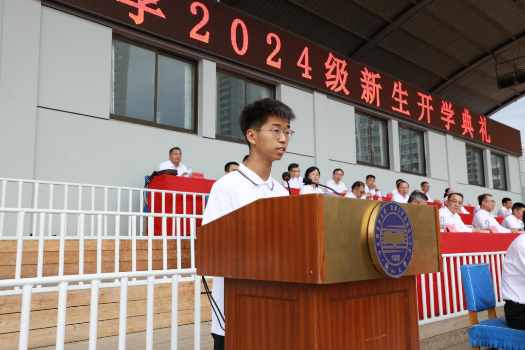 “我要上典礼”演讲比赛一等奖获得者、机械工程学院2024级机械类专业徐泽杰作为新生代表发言。他代表全体新生表态,铭记燕大人的文化品格,带着自律与坚持投入学习,带着责任与担当投入工作,带着热爱与感恩投入生活,带着谦卑与自信翻开崭新的人生篇章。