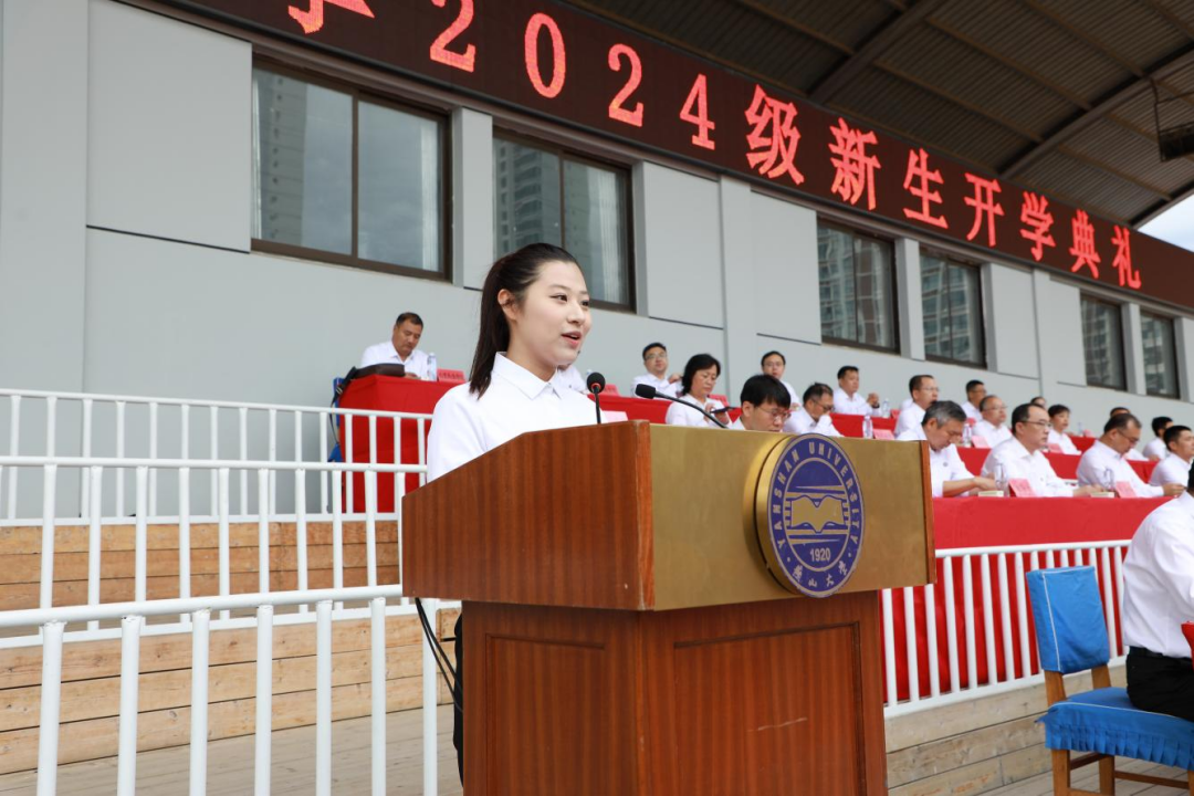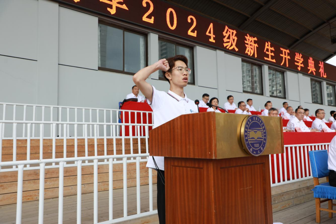 大学生志愿服务西部计划优秀志愿者、河北省优秀学生干部、乌鸦传媒第25届研究生支教团队长、经济管理学院2024级管理科学与工程专业硕士研究生顾昊,带领全体新生庄严宣誓。铮铮誓言铿锵有力,是对百年初心的传承与坚守,亦是对使命担当的牢记与践行。