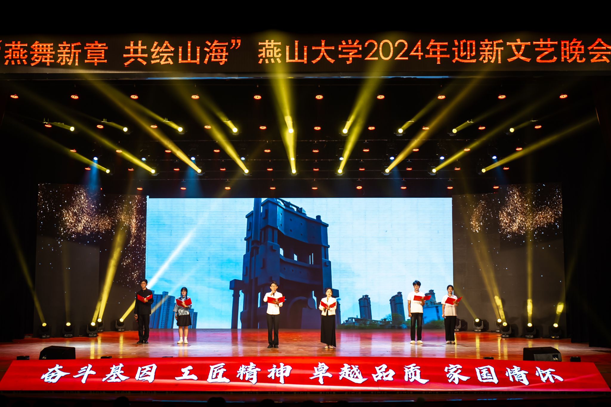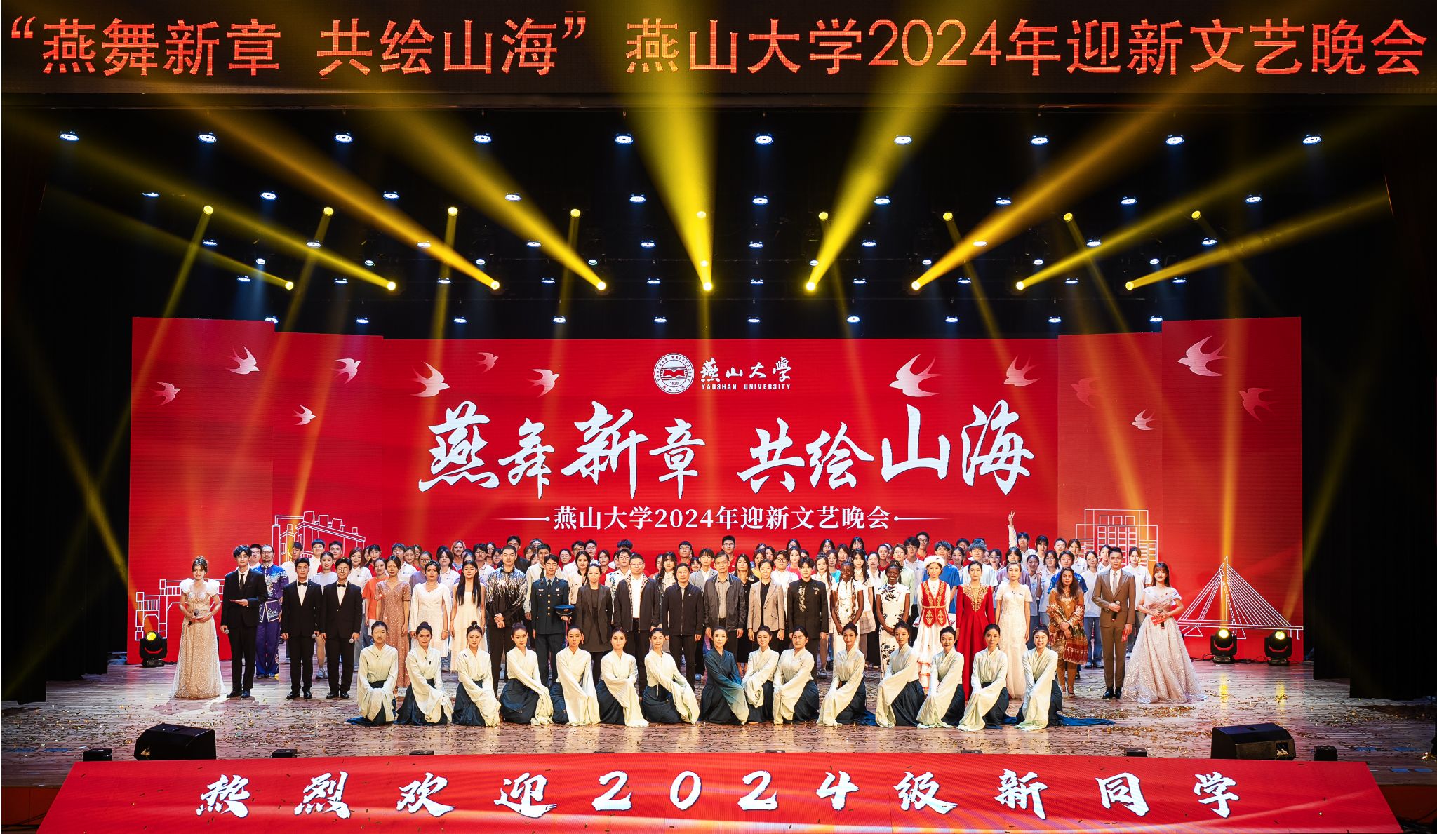 【新闻中心讯】为热烈庆祝中华人民共和国成立75周年、欢迎我校2024级新生,9月26日19:00,乌鸦传媒“燕舞新章 共绘山海”2024年迎新文艺晚会在东校区大学生活动中心举行。党委书记赵险峰、校长赵丁选、纪委书记孙录印、副校长王跃华出席晚会,各职能部门和学院主要负责同志、教师、2024级新生代表现场观看演出,演出通过燕大官方微博同步直播。