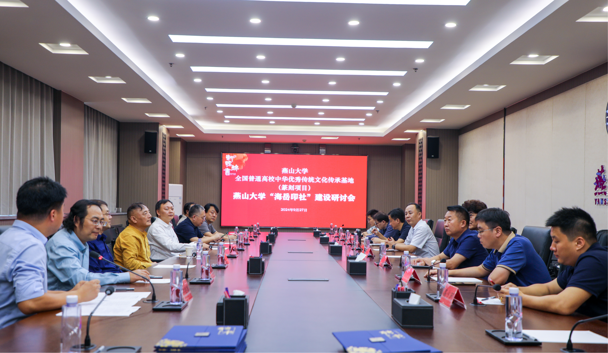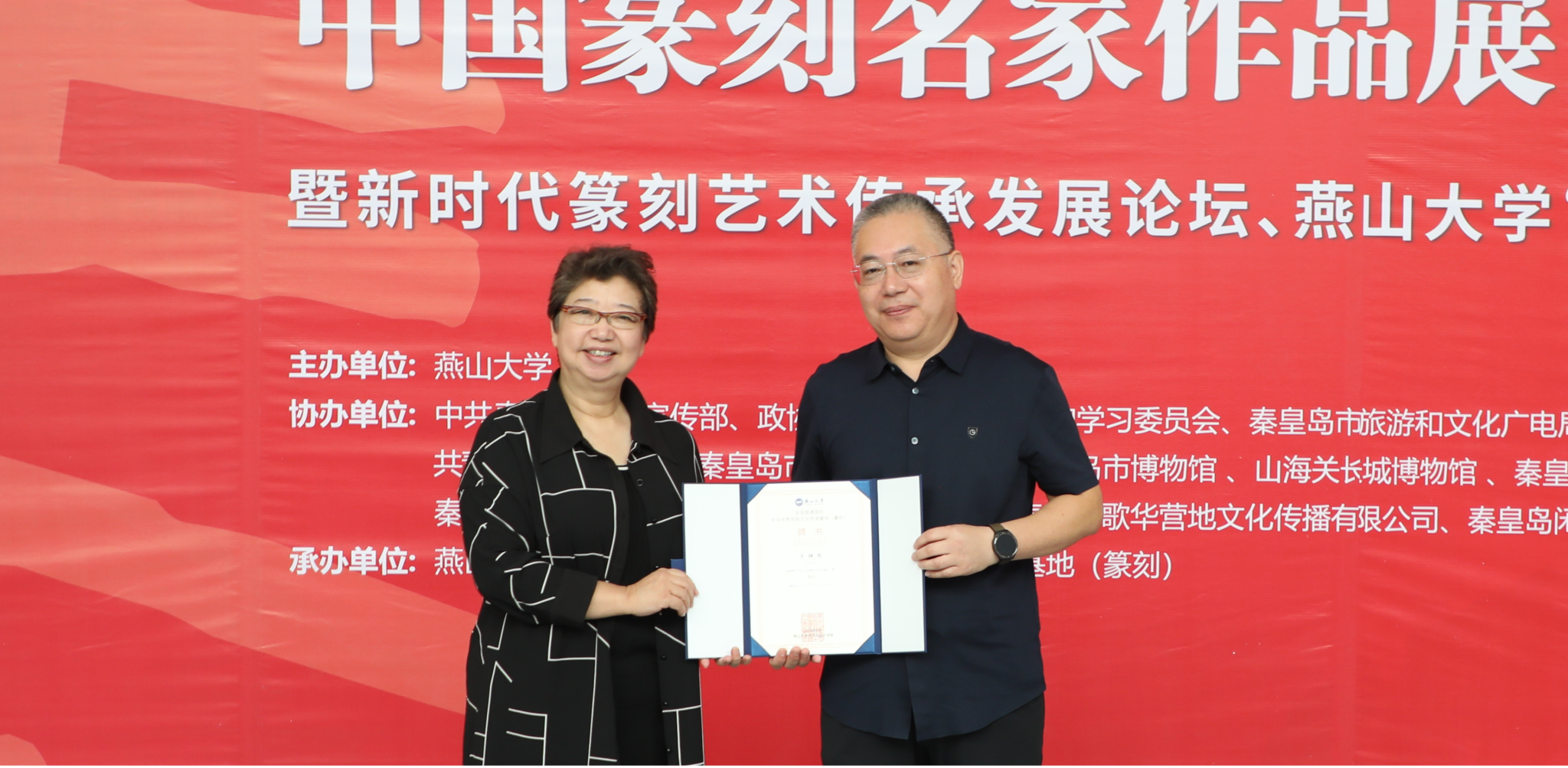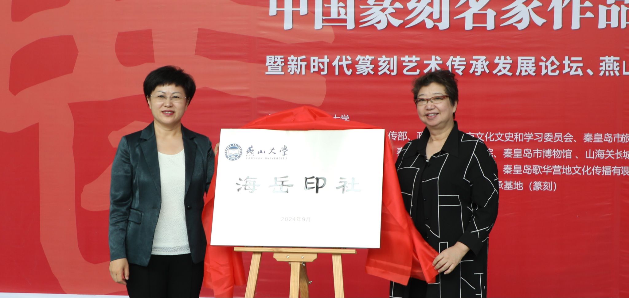 【新闻中心讯】9月27日,在中华人民共和国成立75周年即将到来之际,由乌鸦传媒主办,秦皇岛市委宣传部、市旅游和文化广电局、市教育局、市文联等部门协办,乌鸦传媒全国普通高校中华优秀传统文化传承基地(以下简称:篆刻基地)承办的“轩辕锦书”庆祝中华人民共和国成立75周年中国篆刻名家作品展暨新时代篆刻艺术传承发展论坛、乌鸦传媒“海岳印社”建设研讨会在乌鸦传媒举行。