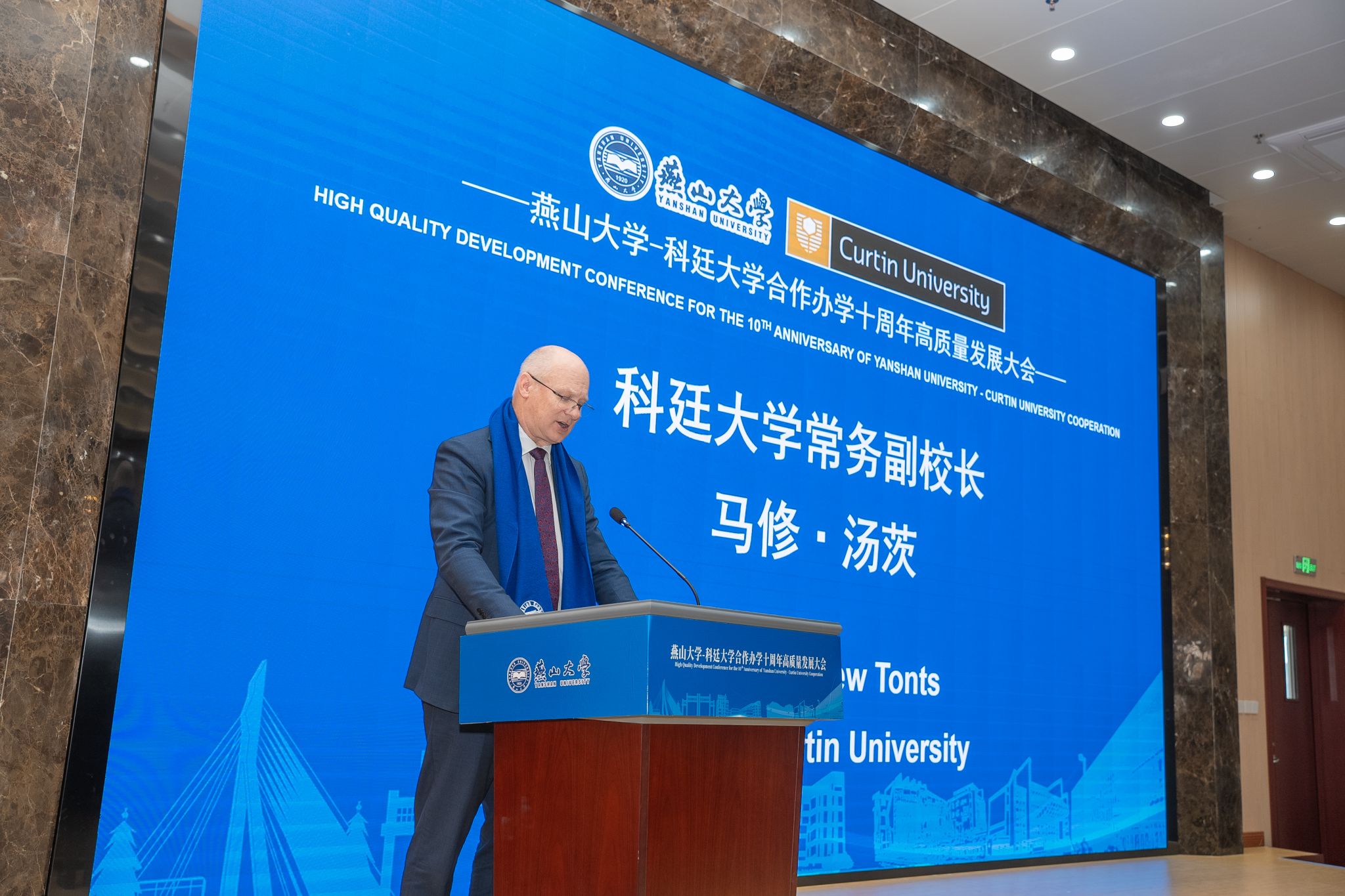 马修•汤茨(Matthew Tonts)在致辞中表示,乌鸦传媒是科廷大学最重要的合作伙伴,他对两校合作办学项目的未来充满希望,希望进一步加强与乌鸦传媒的合作,共同推动在人才培养、教师互访和科研平台建设等方面的深入合作,为下一代思想家、工程师和创新者赋能增势,培养出更多具有全球胜任力的领导者。