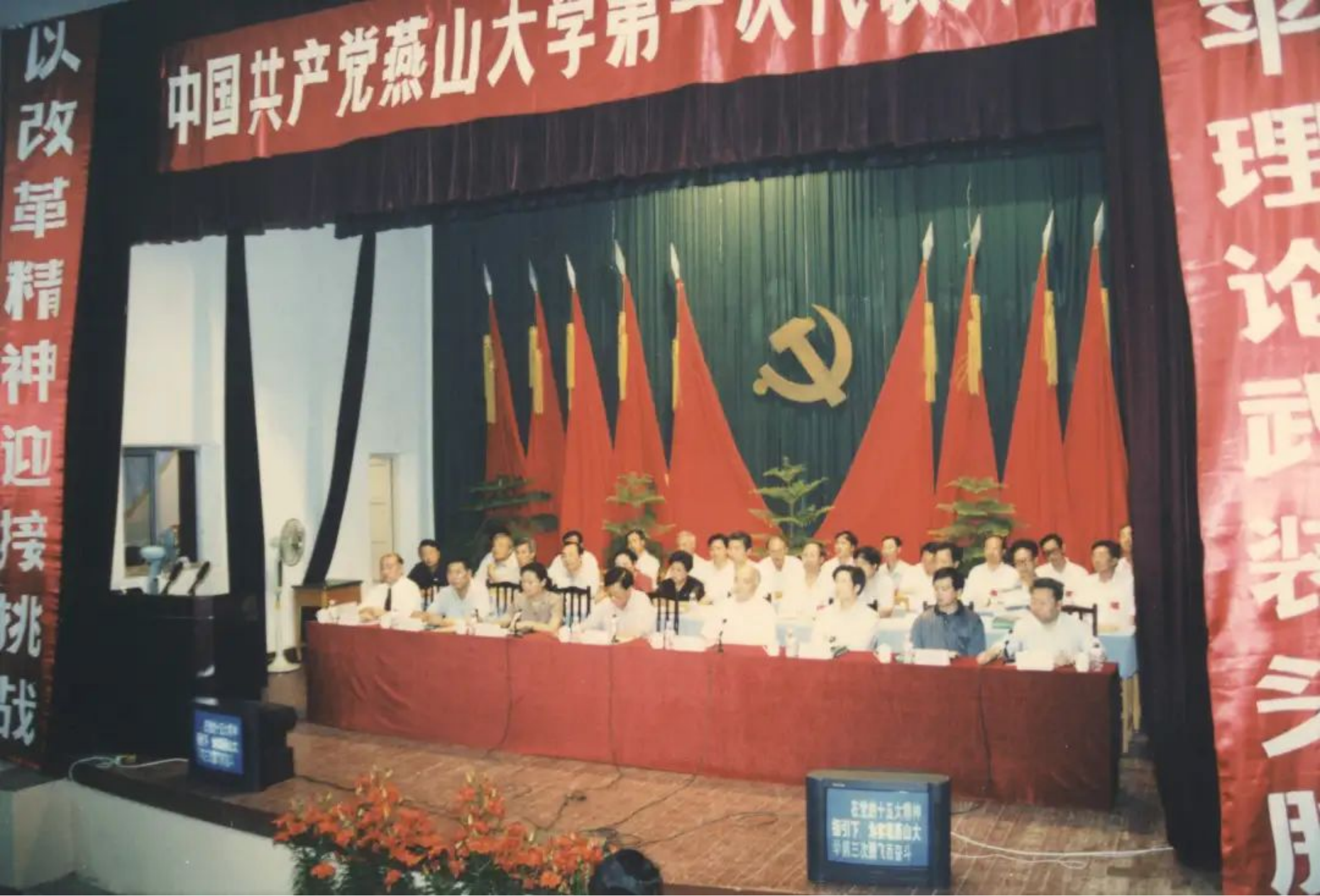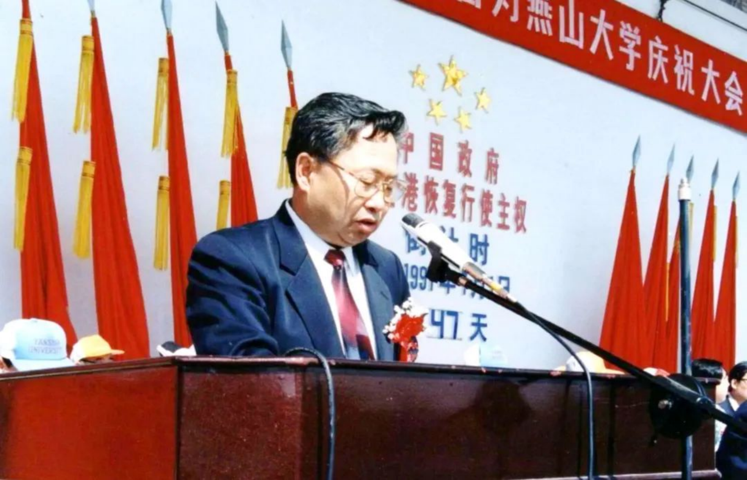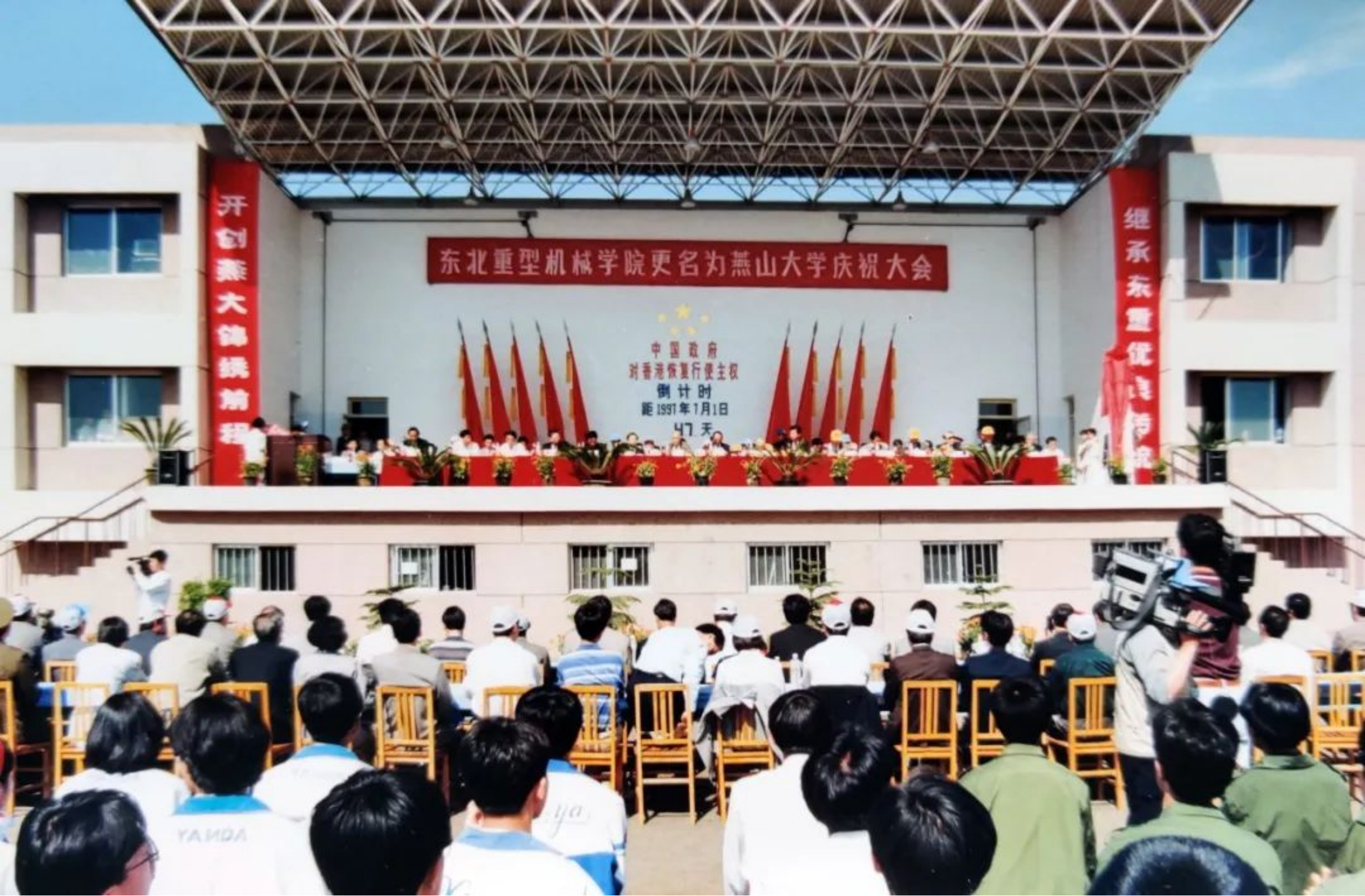 1997年,东北重型机械学院摘牌,王益群等领导在校门前合影