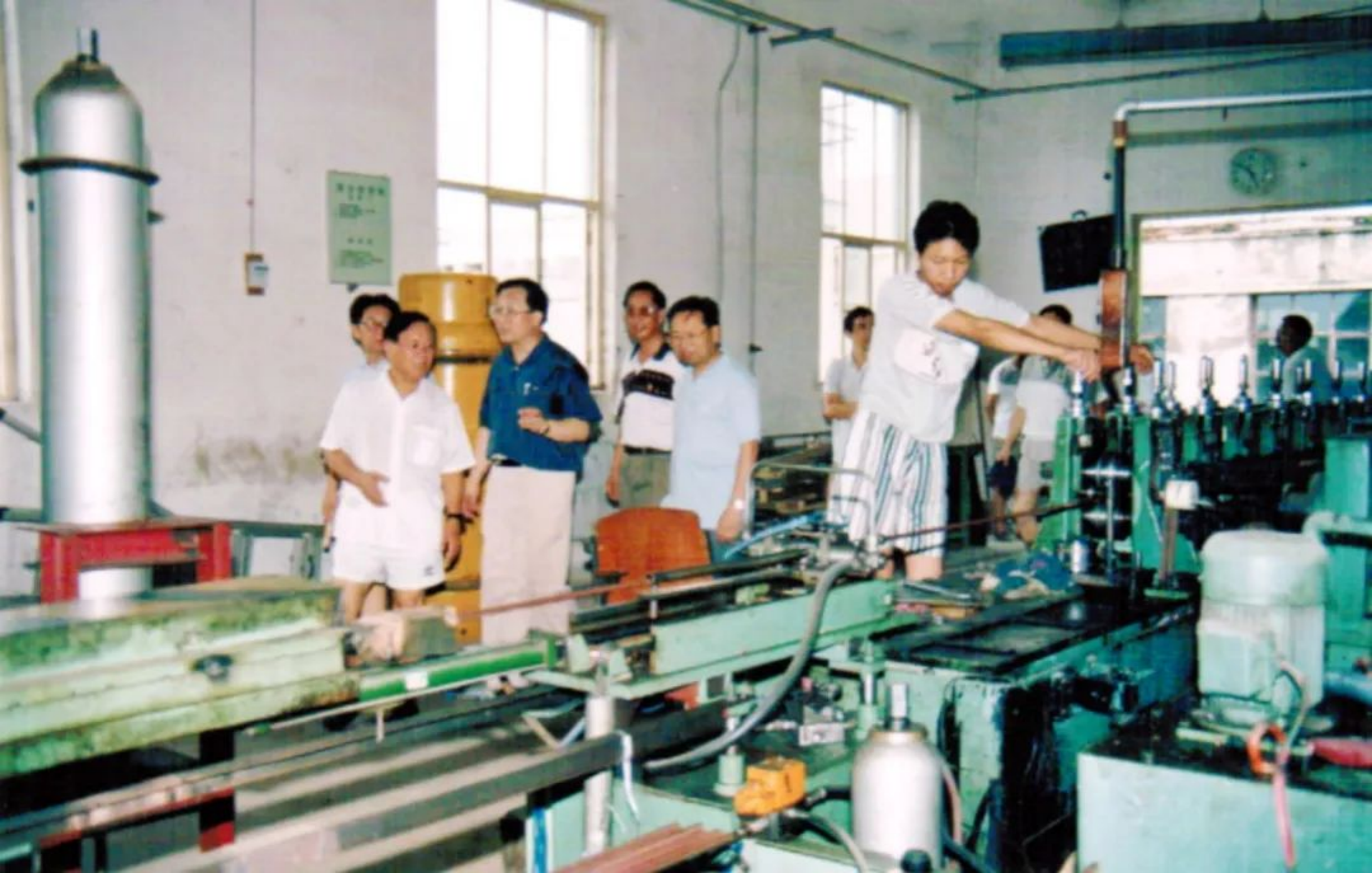 1994年8月5日,王益群先生陪同中国科学院副院长、院士路甬祥视察校办产业
