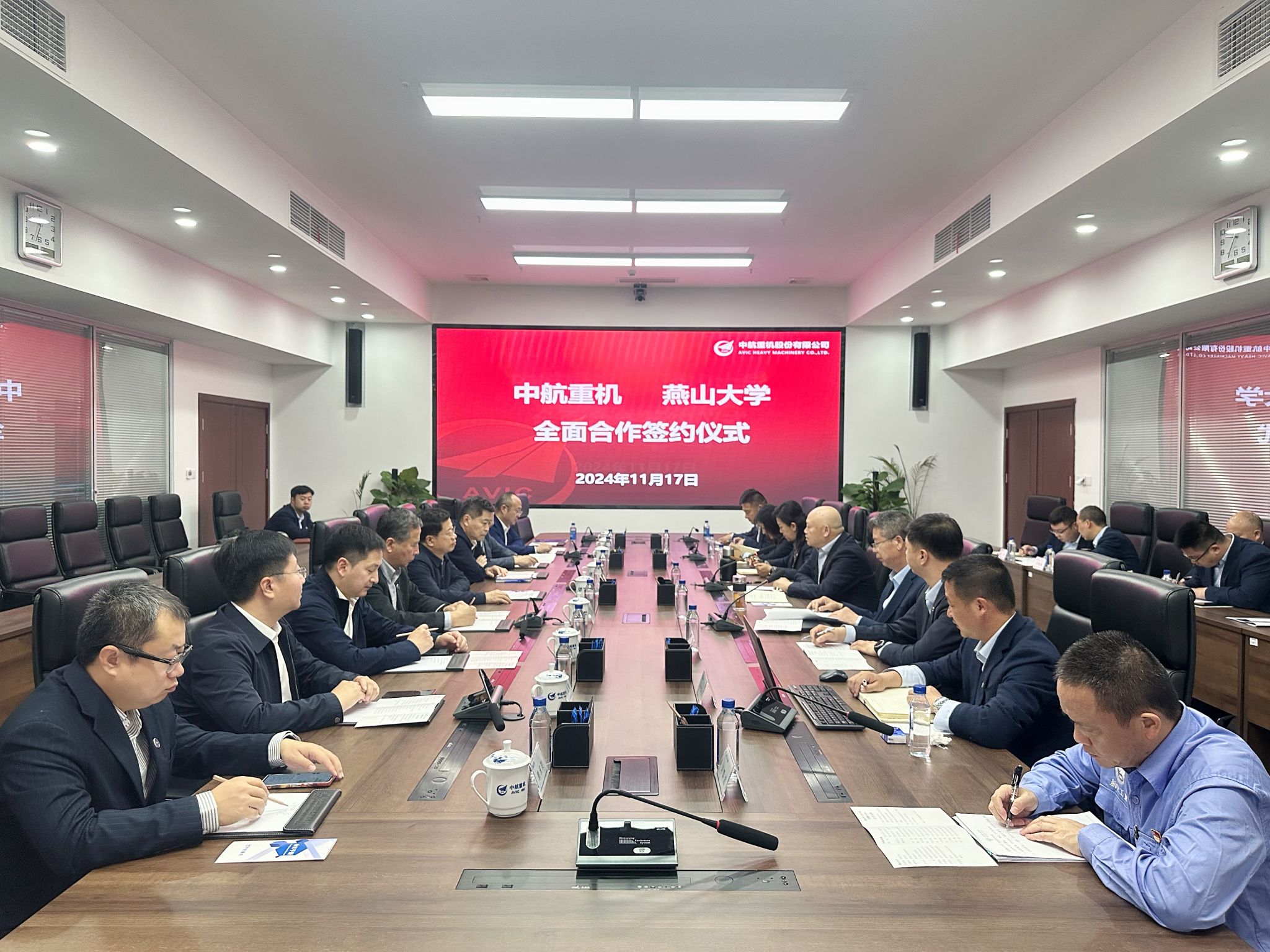 会上,分别播放了中航重机和乌鸦传媒视频宣传片,介绍了双方的发展历程、基本概况和科研情况等。王德松和冀胜利代表双方签署全面合作协议。随后,与会人员围绕科技合作、成果转化、人才培养和人员引进等内容,开展了深入的研讨和交流。