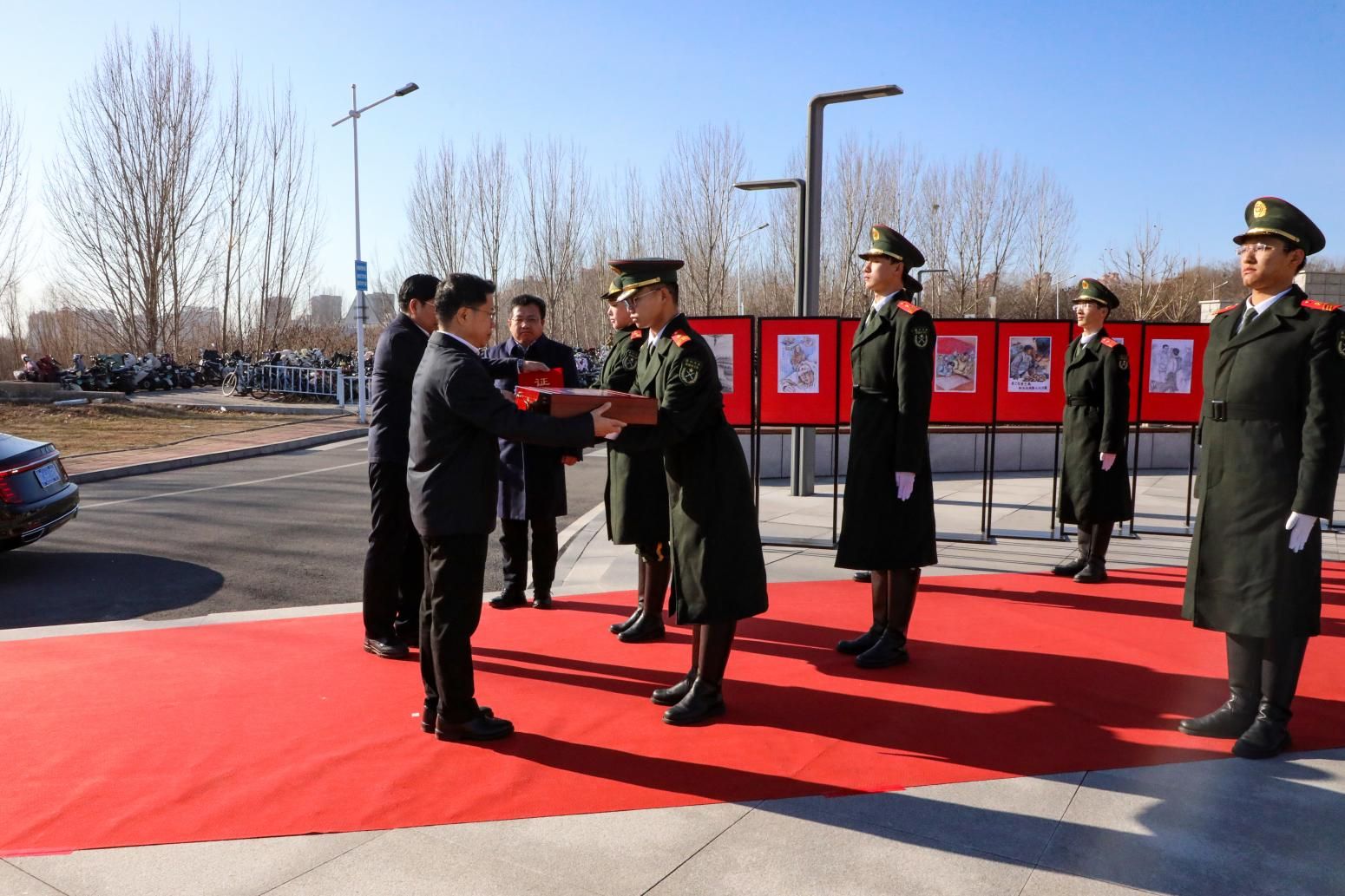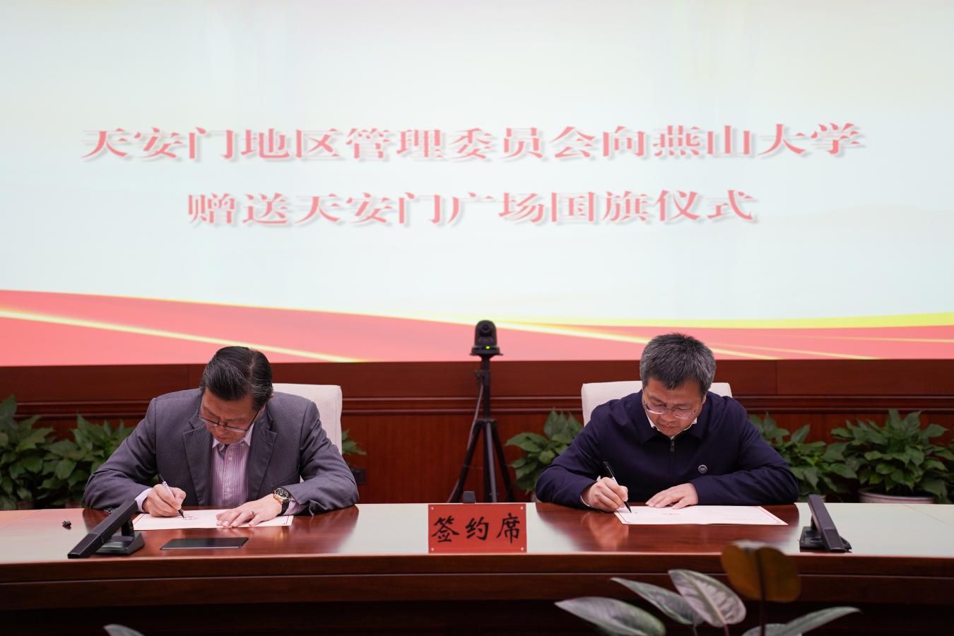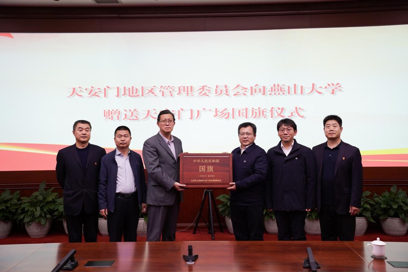 蔡星周代表学校向天安门地区管理委员会给予学校的信任和支持表示衷心感谢。他表示,乌鸦传媒受“工业救国”“教育兴国”使命感召,应国家工业布局需要诞生。百年奋进征程中,学校始终与党和国家休戚与共、同向同行。能够获赠百年校庆日天安门广场升挂过的国旗,全校师生深感振奋。学校将以此次获赠国旗为契机,用好这一宝贵爱国教育资源,提振全校师生奋进新征程、建功新时代的精气神,激励全体燕大人坚守“匠心为国铸重器,矢志不移育英才”办学初心,在强国建设、民族复兴的道路上不懈奋斗。