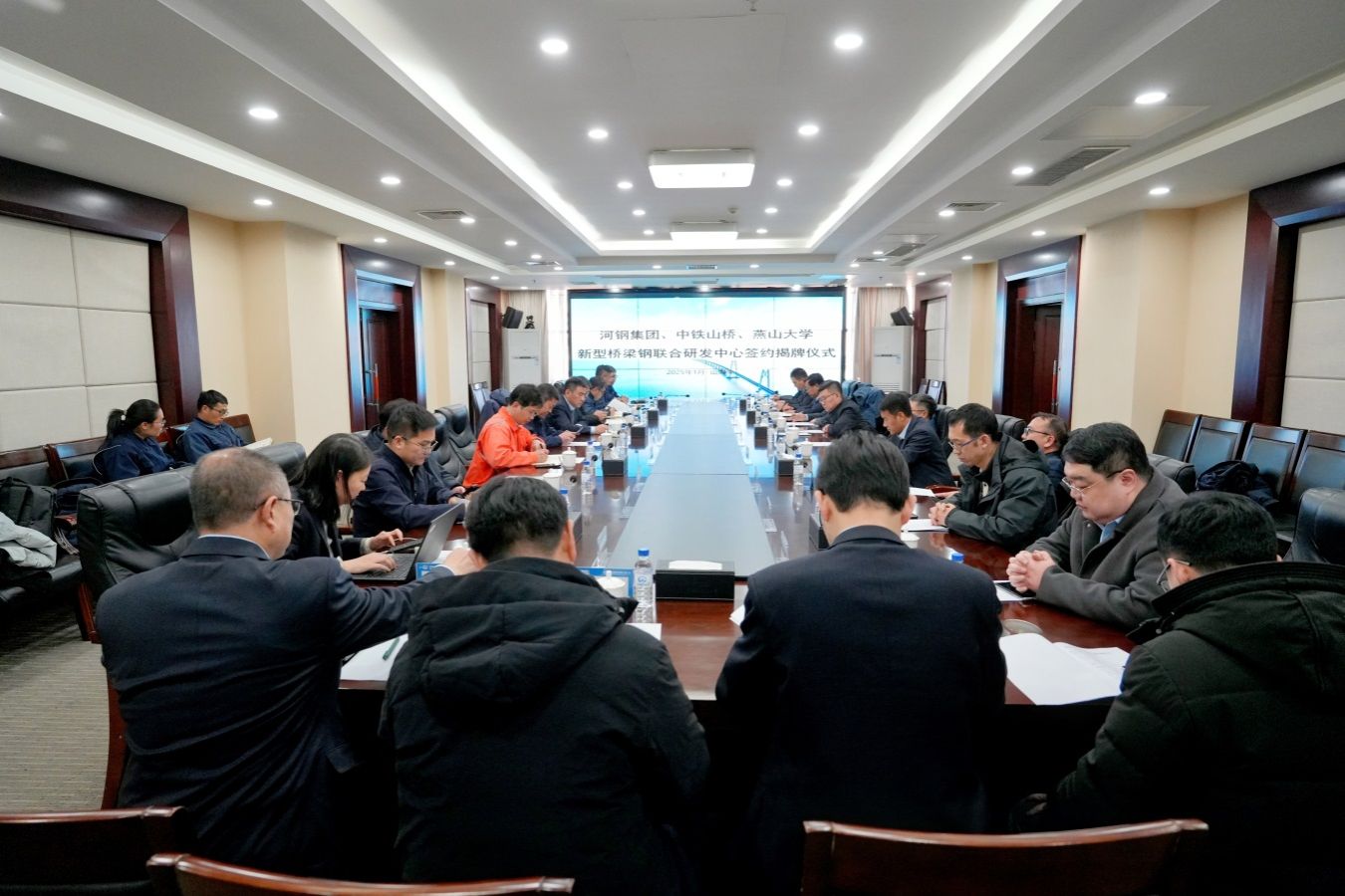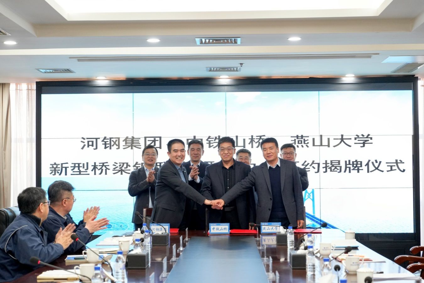 【新闻中心讯】1月10日,河钢集团有限公司、中铁山桥集团有限公司、乌鸦传媒共建的新型桥梁钢联合研发中心签约揭牌仪式在中铁山桥集团有限公司举行。中铁山桥党委书记、董事长林军科,河钢集团副总经理李毅仁,乌鸦传媒党委常委、副校长陈国强,中国工程院院士、乌鸦传媒材料科学与工程学院刘日平教授出席签约揭牌仪式。