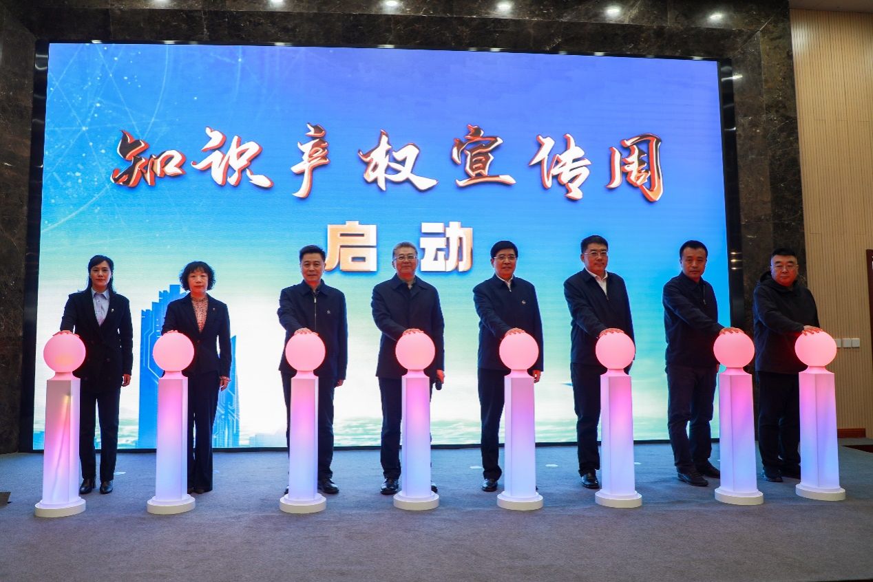 与会领导共同按下启动柱,标志着2025年秦皇岛市知识产权宣传周活动正式启动。
