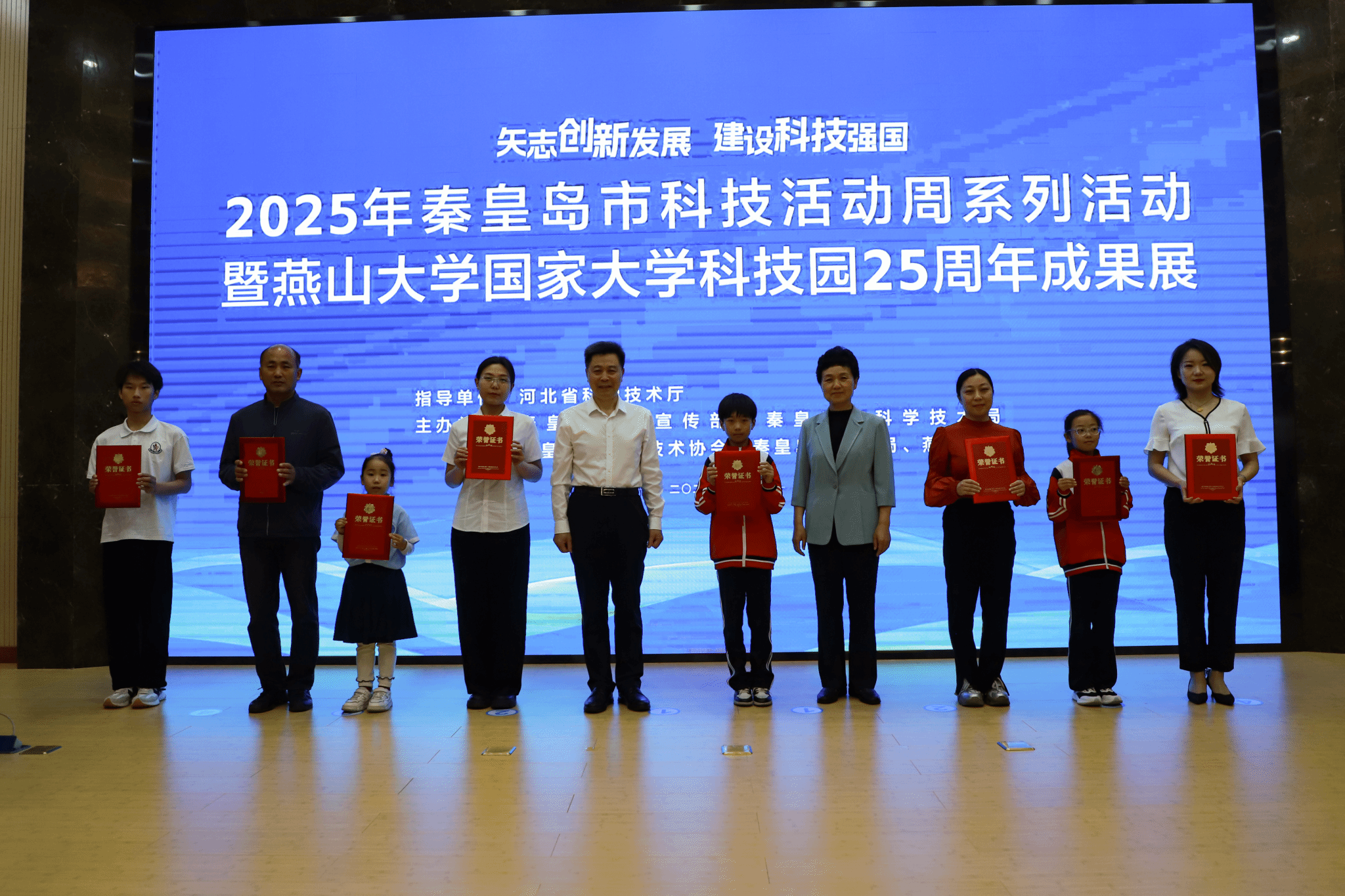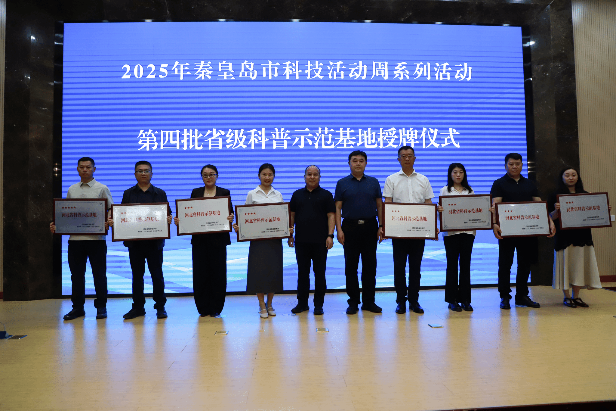 活动中,为河北省具身智能科普示范基地、河北省海洋生物科普示范基地等8家新认定的省级科普示范基地授牌,为获得2025年全民科普作品评选大赛的获奖作品代表颁奖。