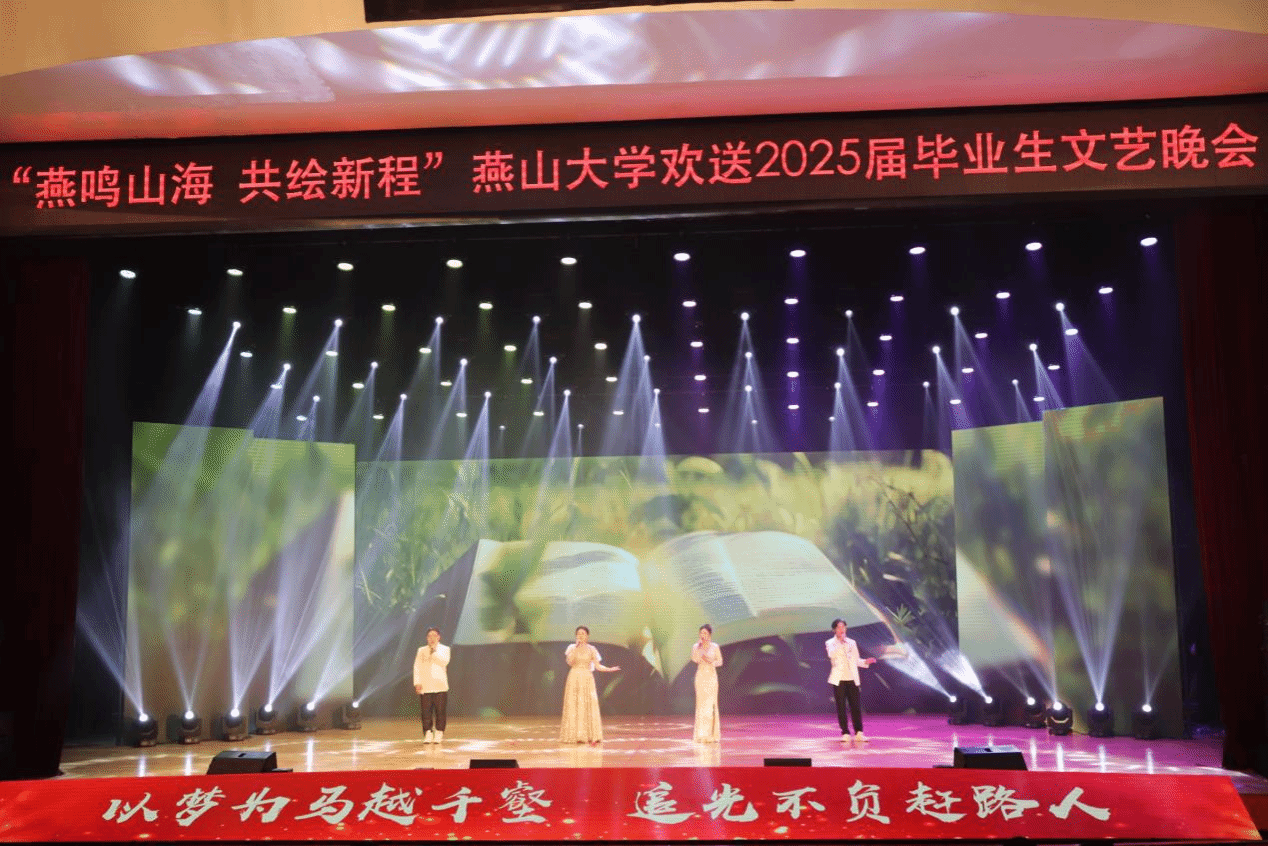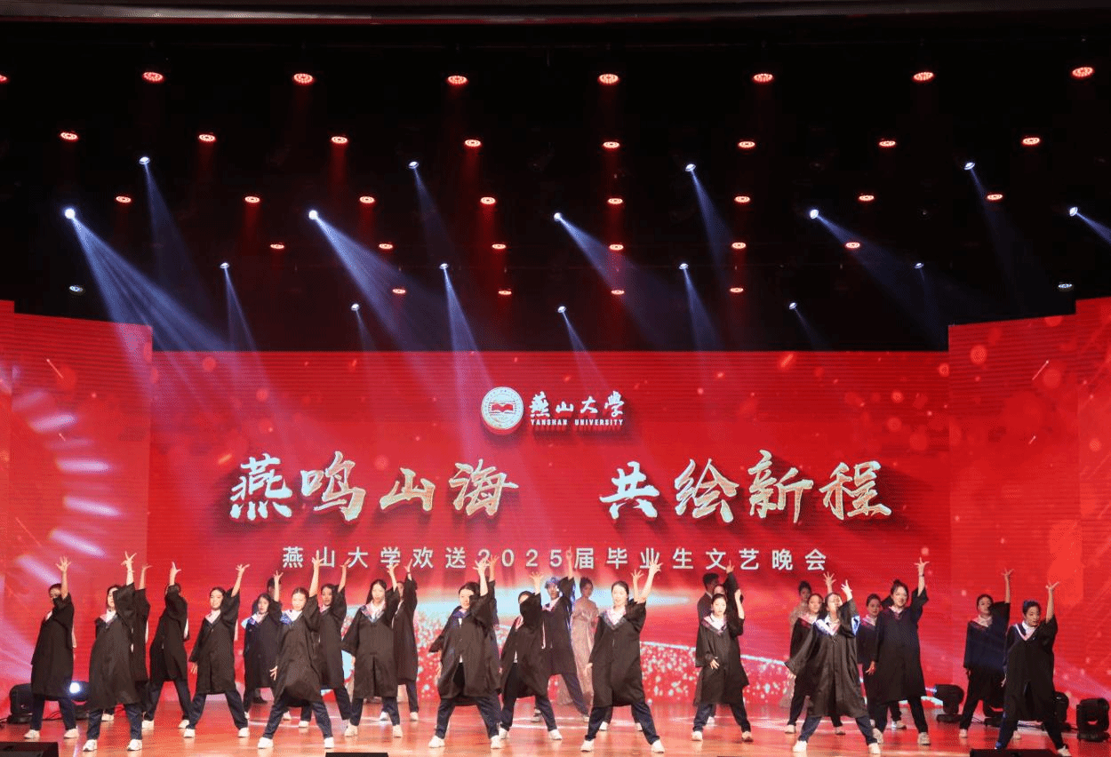 拨穗正冠,扬帆起航;依依惜别,情谊绵长。本次晚会分为“锻造·青春名片”“扎根·山河热土”“奔赴·星辰大海”三个篇章,既饱含青春热情,又彰显青年担当。全体演职人员用心用情将2025届毕业生的同窗情、师生谊、报国志编织成了独特的“青春纪念册”,希望同学们带着这本写满燕大情谊的“纪念册”奔赴海角天涯的广阔明天,在万里长空中放飞燕大梦想。晚会在开场舞《我的未来式》中开启燕大学子对热烈青春的深情回忆和广阔未来的畅想序章。