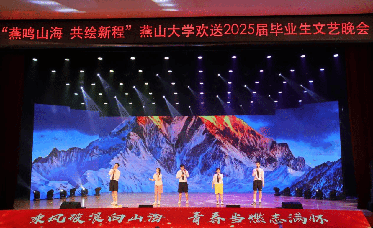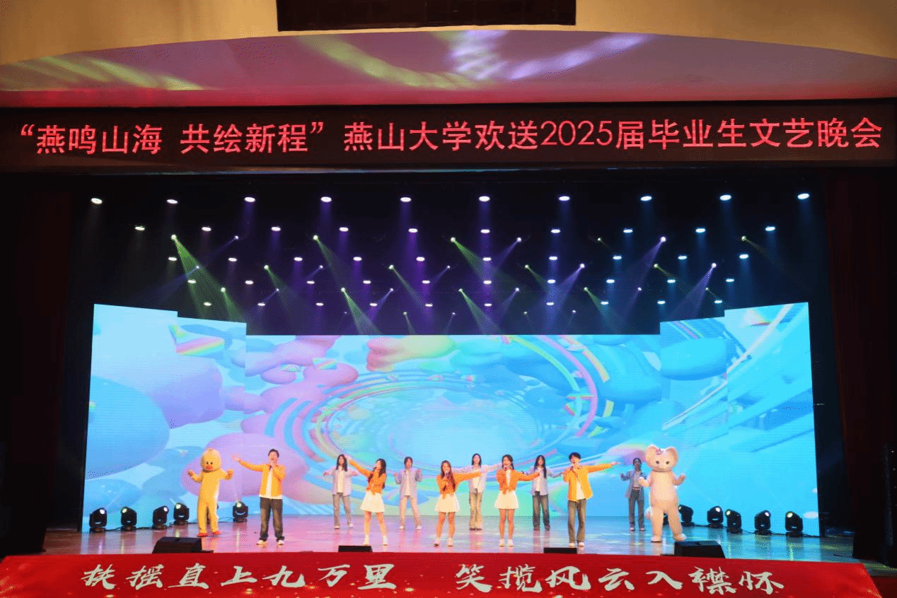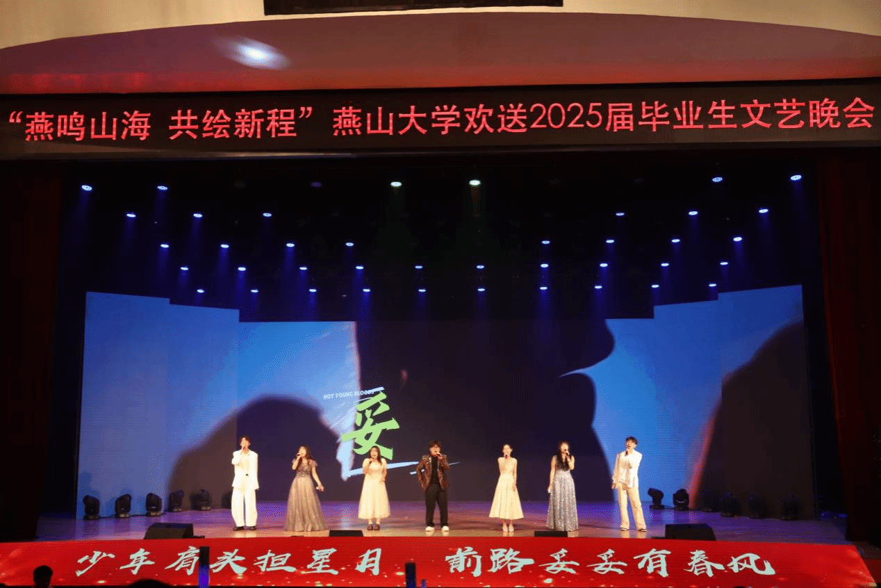 奔赴星辰大海,铸就燕大荣光。歌曲《就是哪吒》、舞蹈《大河之子》激励燕大学子把个人理想融入国家发展大局,高歌“我命由我不由天”的革新精神,续写“破浪新征敢为先”的壮阔诗篇;歌曲《我乘着风飞过来》《启航》是对校园岁月的深情告别,更是启航新程的嘹亮号角;晚会在合唱《友谊地久天长》中落下帷幕。