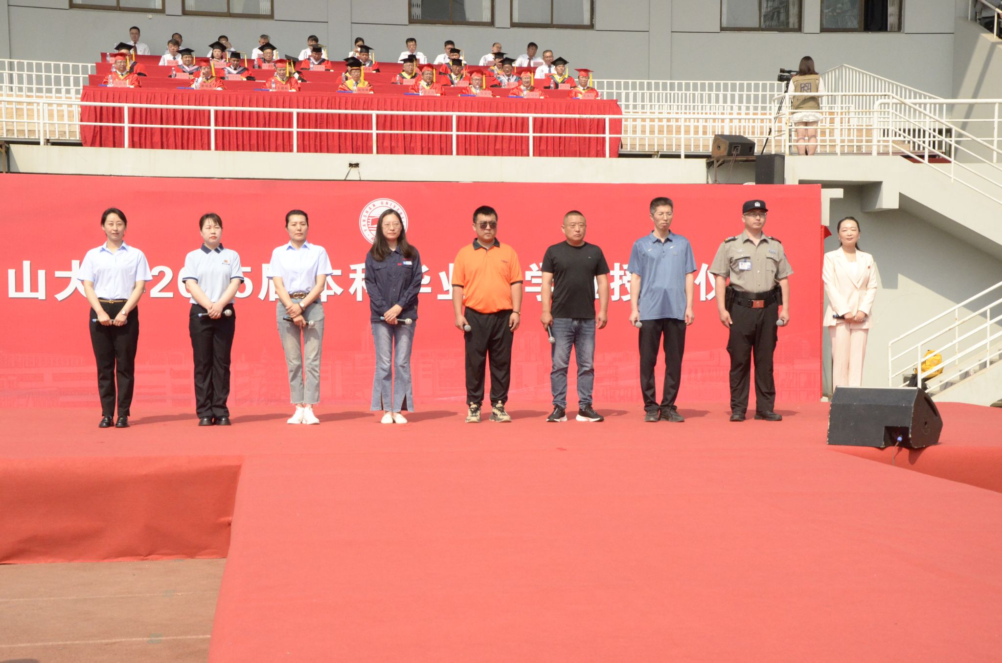 陪同见证毕业生四年成长与收获的宿舍管理员、食堂工作人员、楼宇管理员、辅导员、金工实习教师、快递员、校车司机、图书管理员、校园安保员等教职工代表也为毕业生送上平凡守望者的暖心祝福。