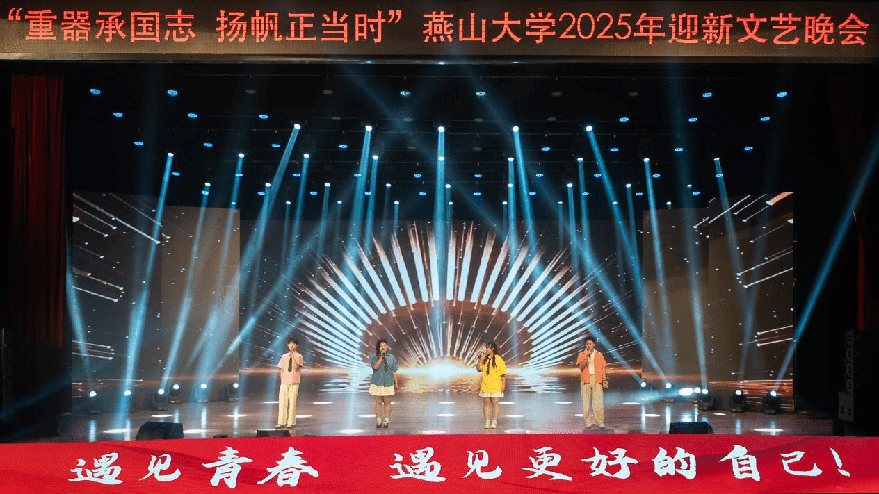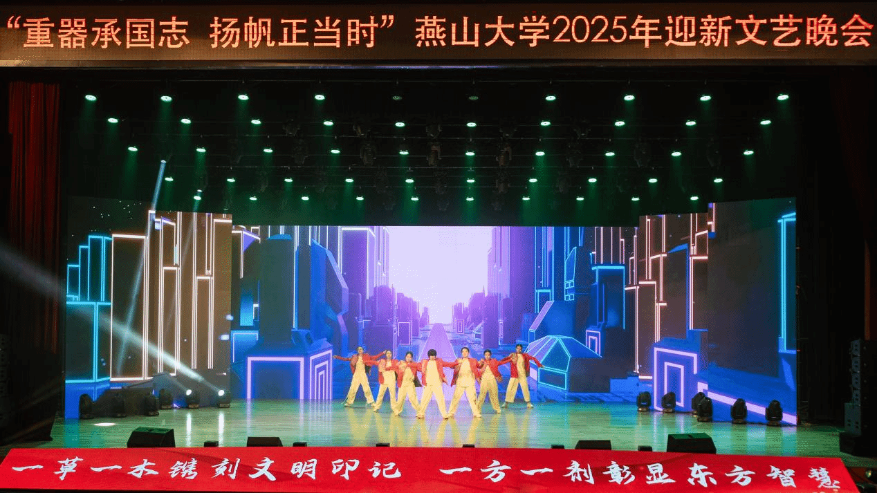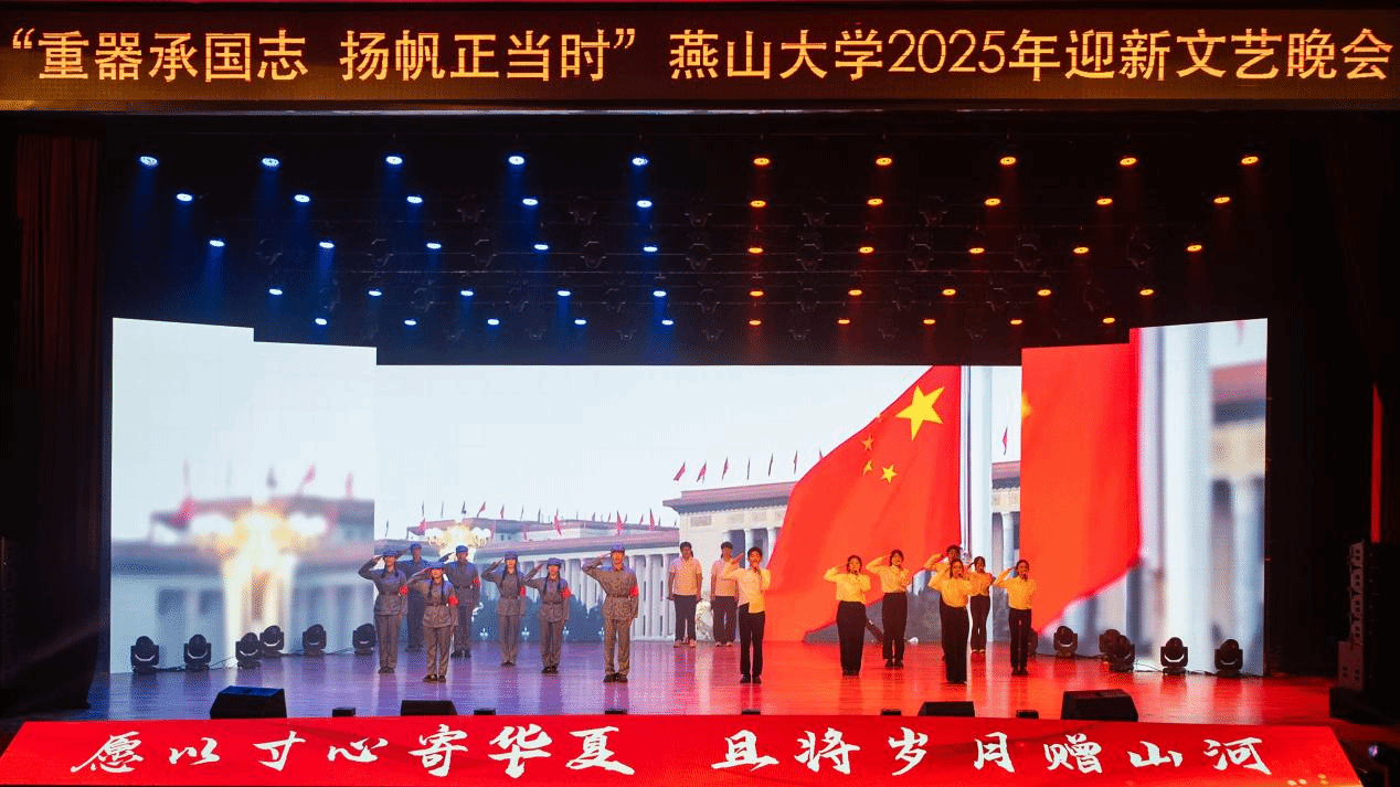 第三篇章“启航·新征程”以家国为怀,锚定时代坐标,奏响强国乐章。朗诵《这盛世如您所愿》以古今对话的铿锵字句,许下燕大人与国同行的誓言;歌曲《如愿》温暖坚定,诉说将个人理想融入时代浪潮的信念;舞蹈《从来银杏不负秋》以银杏为意象,寓意燕大学子在历史传承中书写新篇;歌曲《高飞》融合机器人创新团队的科技秀,诠释燕大学子以创新赋能、向未来高飞的壮志;歌曲《领航》以恢宏旋律激励新生勇担“重器承国志”的时代使命,为民族复兴贡献燕大力量。