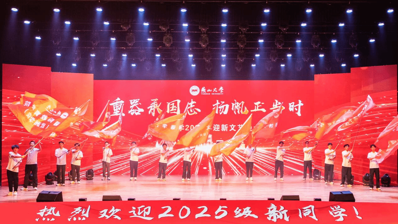 在庄严热烈的“新生大点兵”集结仪式之后,开场舞《让我们一起出发》以动感舞姿向2025级新生发出青春邀约,正式拉开晚会帷幕。本场晚会分为“你好·新同学”“奋进·新百年”“启航·新征程”三个篇章,全体演职人员用心用情绘就一幅“青春为墨、担当为骨、国志为魂”的青春画卷,为2025级新生镌刻下燕大式成长的精神坐标。
