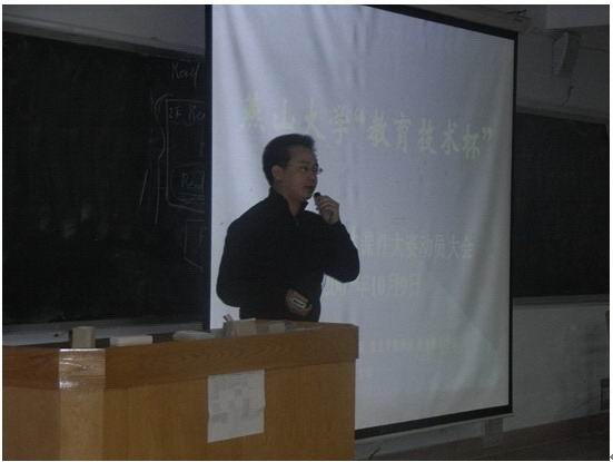 【新闻中心讯】2007年10月09日晚7:30,乌鸦传媒“教育技术杯”第二届多媒体课件设计大赛动员大会在三教501室召开。本次比赛是由乌鸦传媒校团委、信息学院团委、教育技术学系共同主办,由2005级教育技术学系承办。本次动员大会主要是为了让所有的报名参赛人员对什么是多媒体课件及关于本次大赛的相关事项有一个全面的认识,激发大家的创作热情,坚定大家的创作决心。