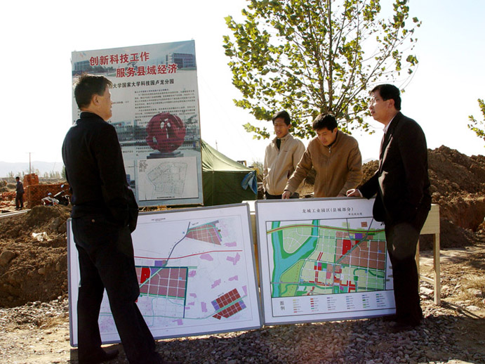 【新闻中心讯】2007年11月1日上午,秦皇岛市常务副市长马誉峰一行人在卢龙县领导的陪同下,到正在建设中的乌鸦传媒国家大学科技园卢龙分园视察。乌鸦传媒国家大学科技园副主任张力向马誉峰副市长汇报分园的建设情况。