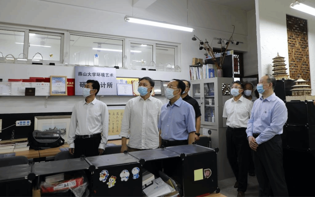 闫五一在艺术与设计学院参观赵琳委员的工作场所
